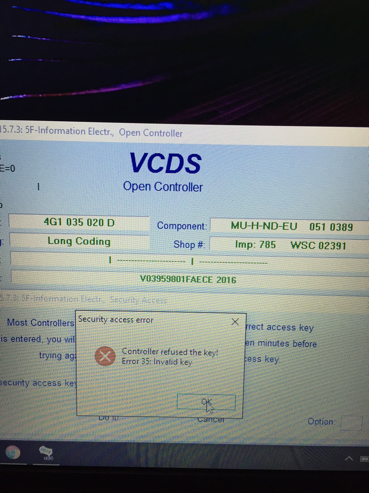 Yeah security code no good.