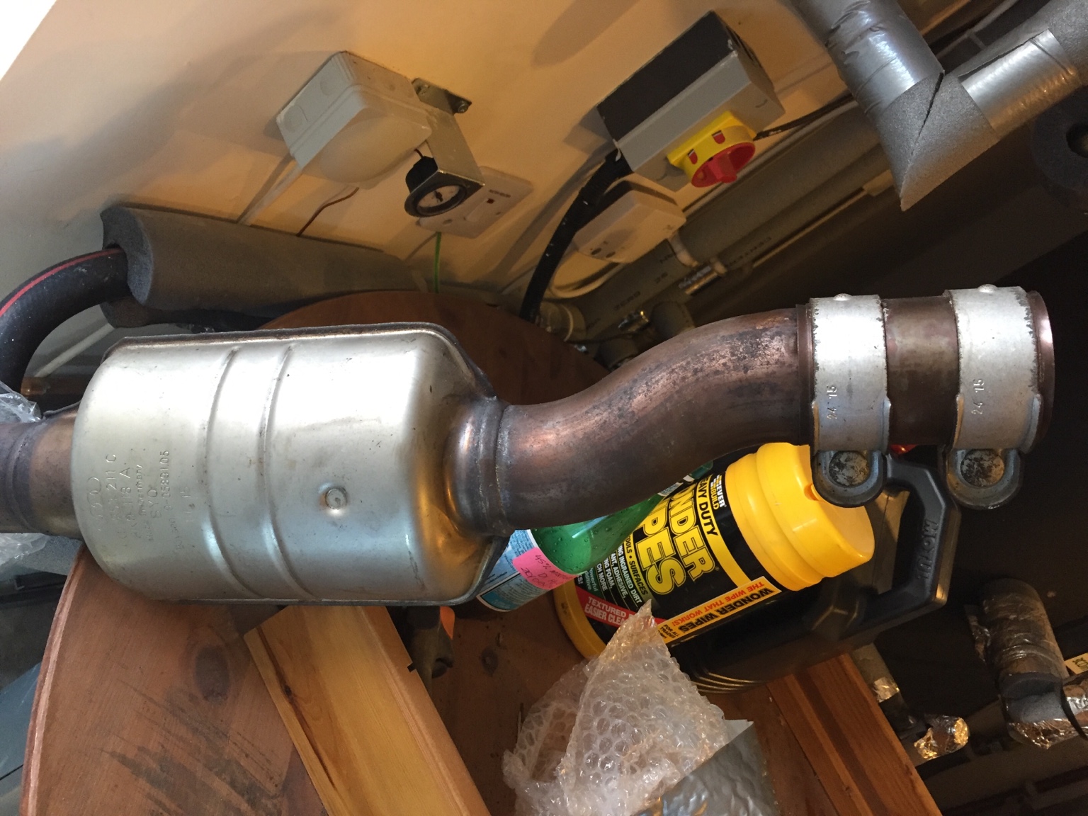 OEM sports exhaust exhaust 'Cats' near the downpipe. They are just an an air box with a straight perforated pipe probably to damp the pressure pulses. Had the exhaust off to change over to a Milltek recently