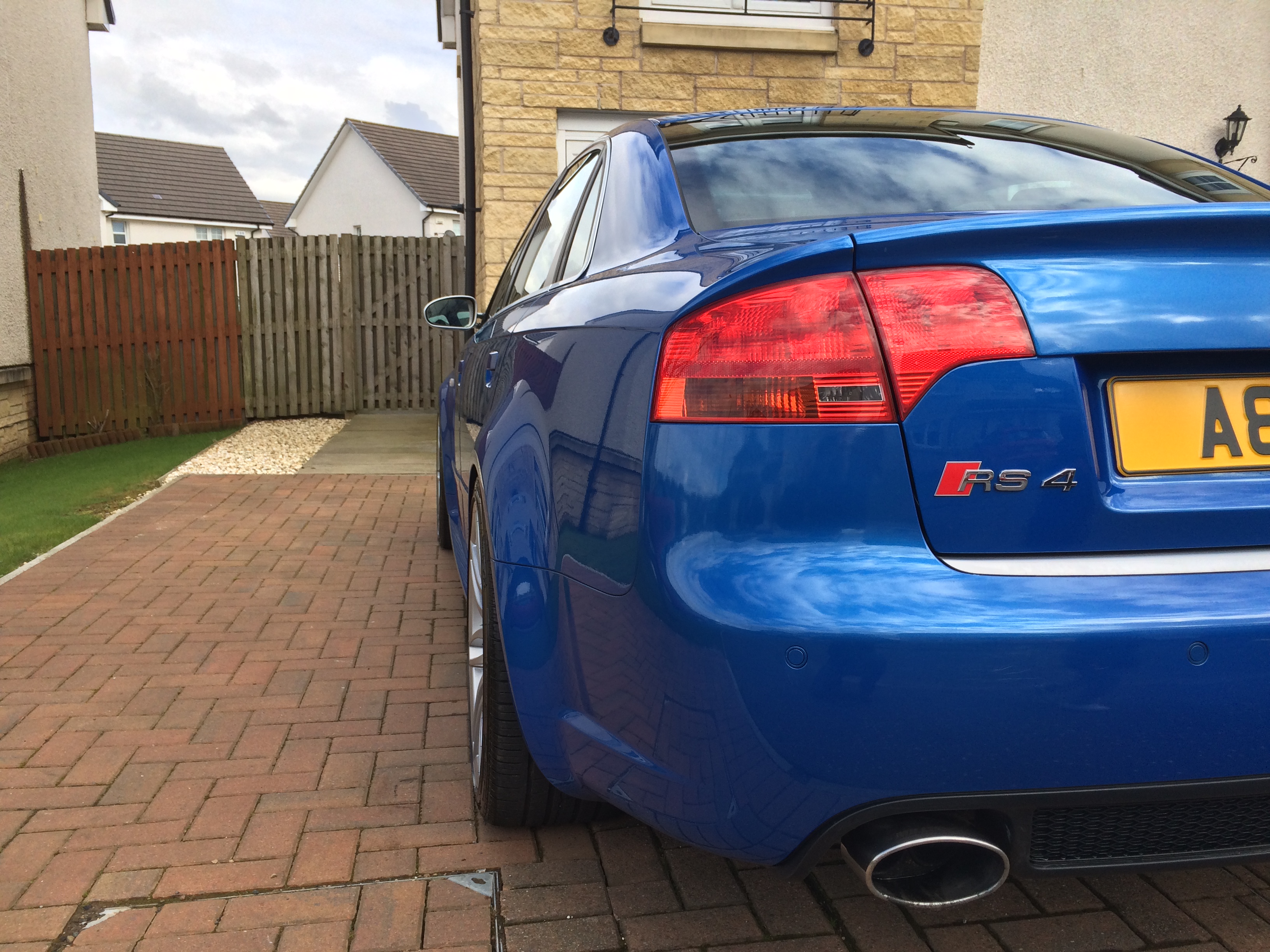 RS4 B7 Saloon Sprint Blue, Bilstein B14 Coilovers, Milltek Cat Back resonated non valved. Spacers 8mm F and 10mm R. Headlight clear zenon lens upgrade with 5500k bulbs plus indicator orange lens delete.