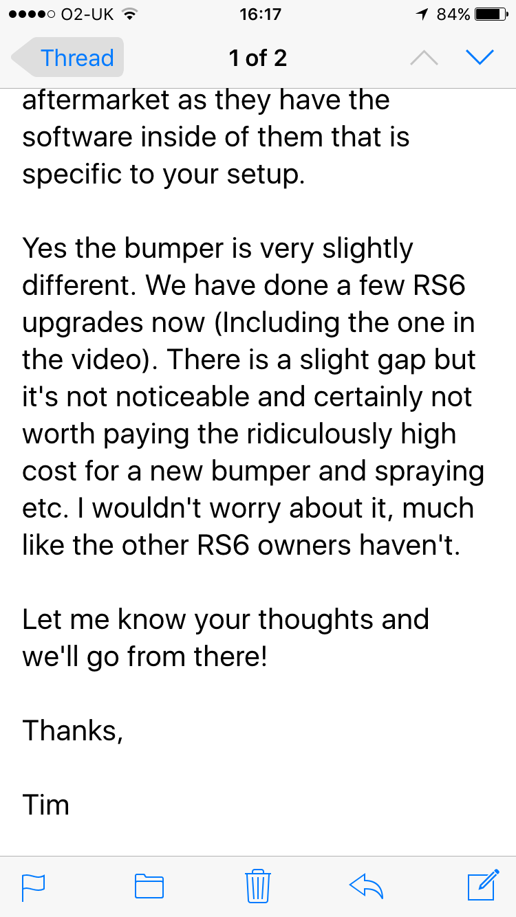 I agree. You're on the money with the difference in "detail" between them and oems. Maybe it's lost due to the video? And I also seem to think the indicators aren't really sweeping along at all. It seems more like the two like parts are just lighting up with a very small sequence difference. Which I think is why I thought the timing of it was all wrong.MikeFish wrote:OEM audi with the adapters fitted maybe?