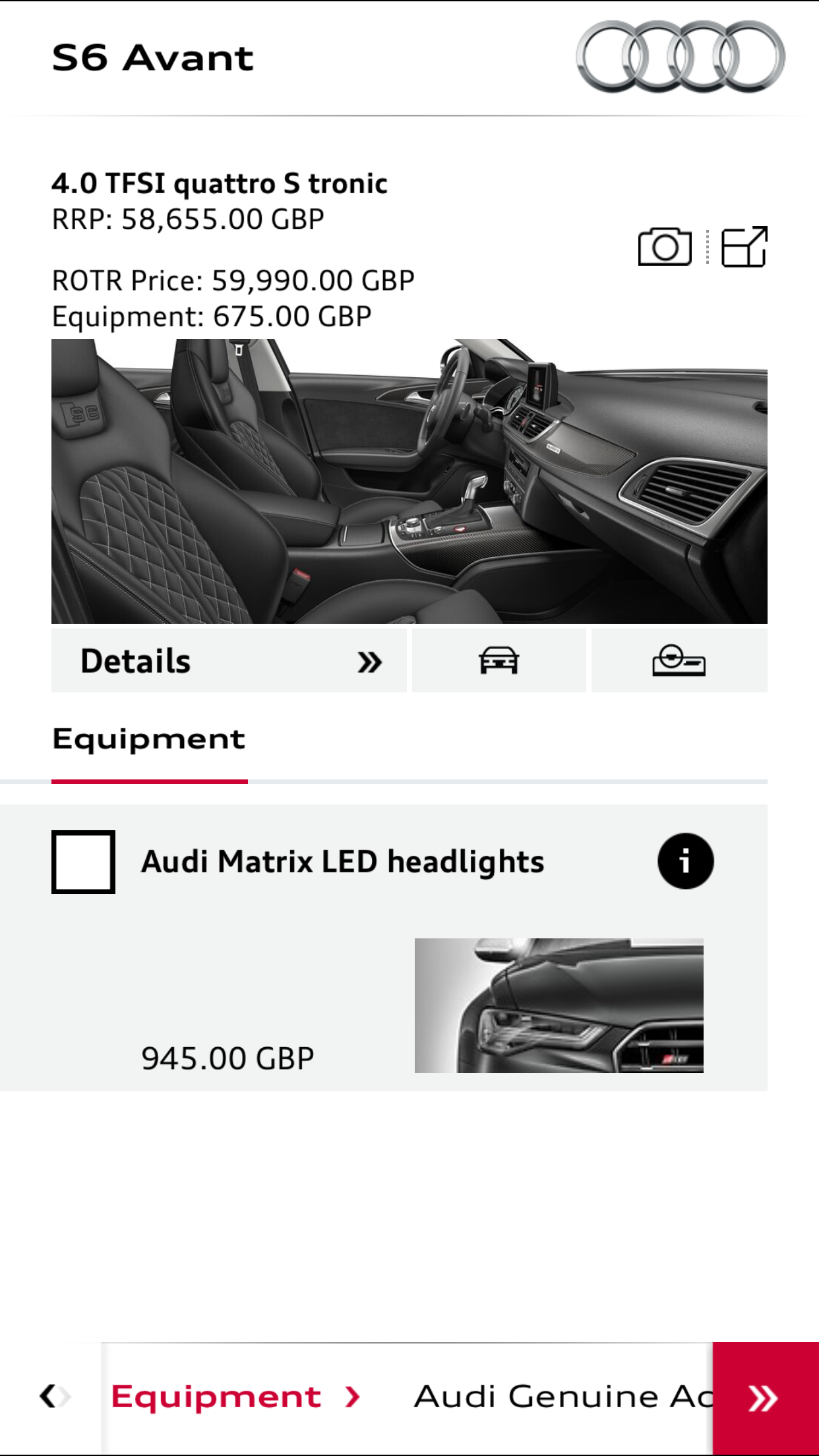 Has anyone else noticed that for the S6 and RS6 LED Matrix isn't an option on the online configurator? There's just one default choice which is LED lights.