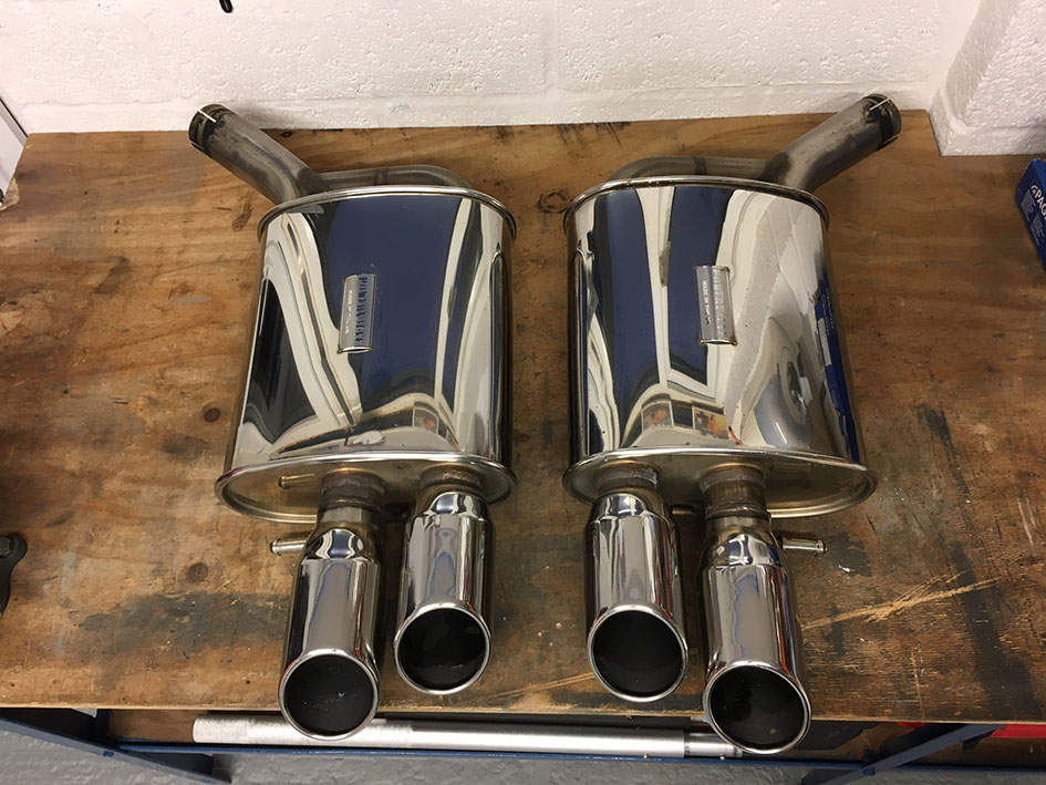 Pair of rear stainless steel silencers bought from BCS Powervalve in Aug '15 and used on my B8 S4. These provide a great change in noise quality, adding a little more throatiness and deep grumble while accelerating - they won't do your head in, and there's no drone from these either when fitted to a standard system.