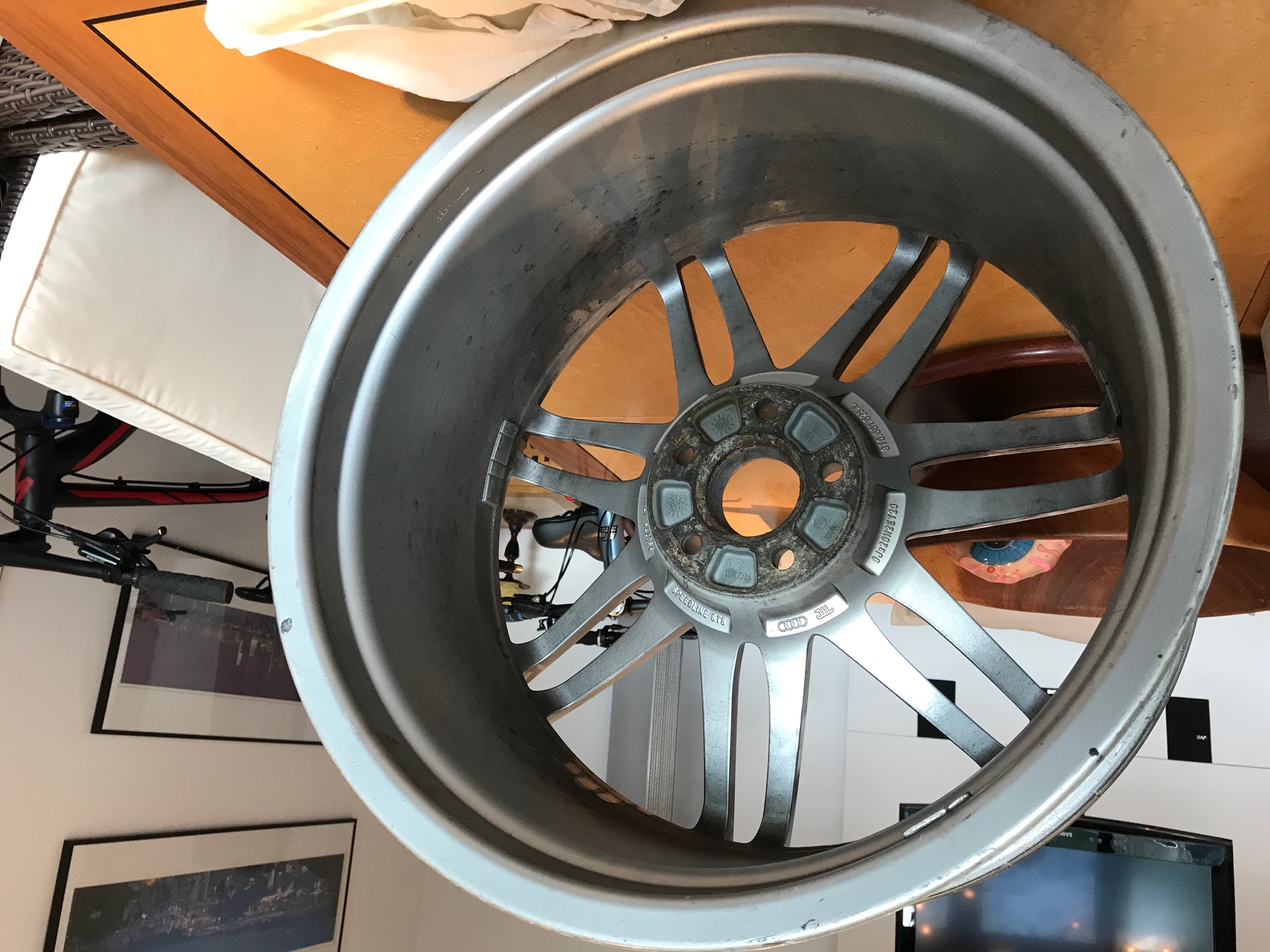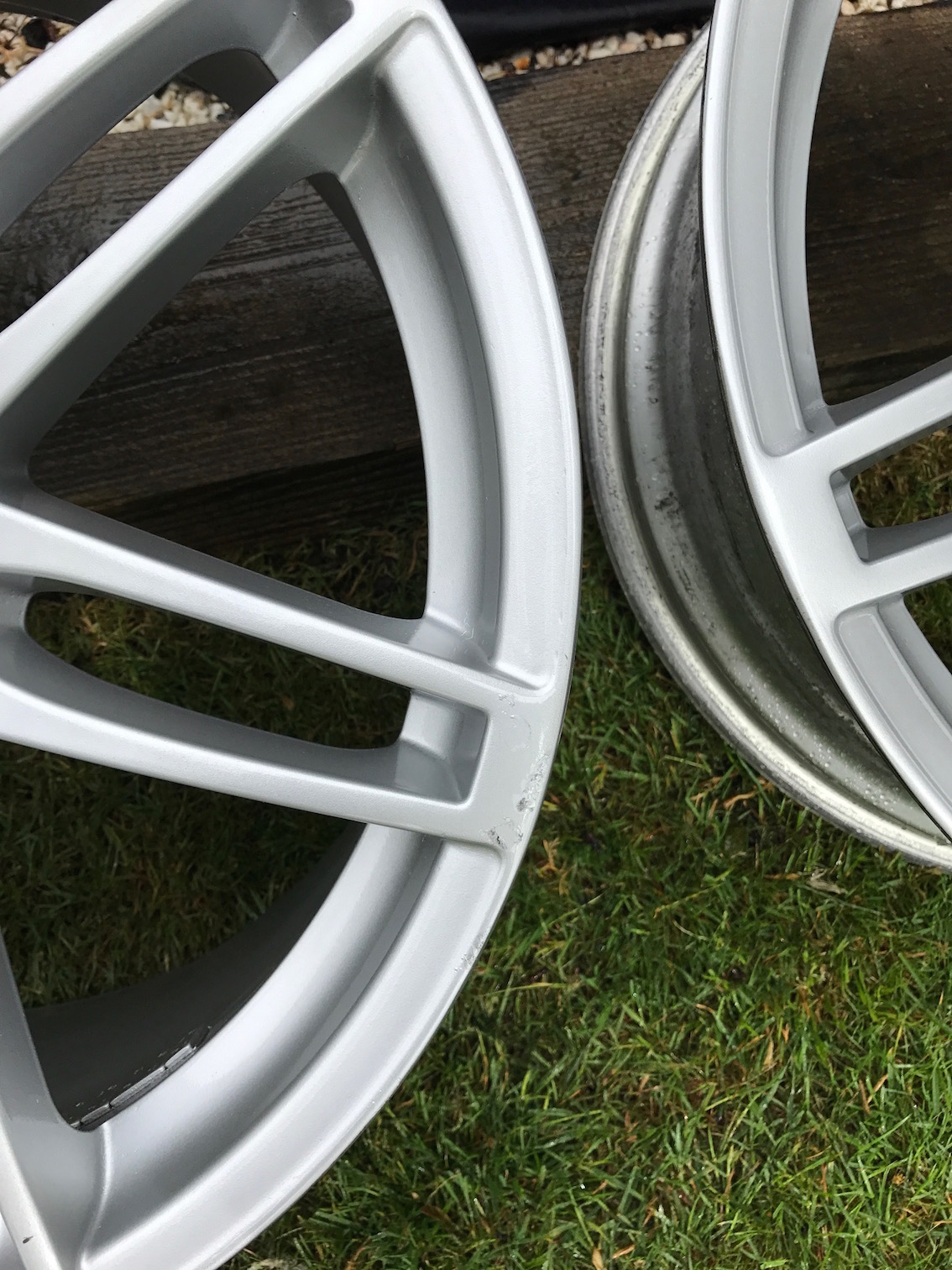 As a couple of asked, all cleaned up now, new photo's attached. I have noticed one small crack in the finish to the rear of one wheel which i hadn't seen in their dirty state. These pictures clearly show their condition, front and back.