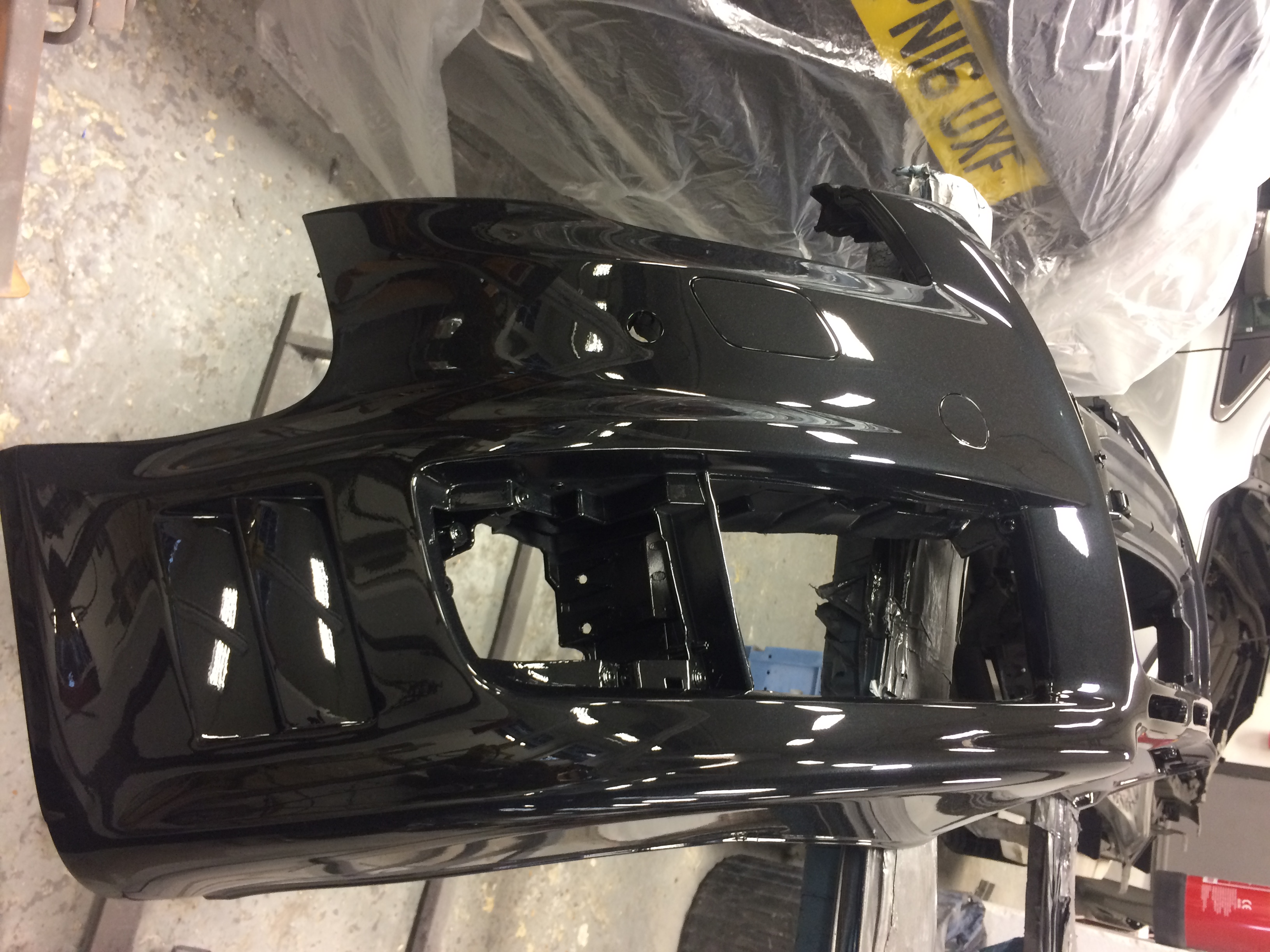 The job took a little longer than anticipated in the end - when they put the bumper back on, a crack opened up in the repair done to the split. They were very apologetic but said they'll sort it. So, they did the repair again, stronger, and resprayed the whole bumper again (using the same paint they'd mixed up for the rest of the job). Credit to them for not trying to cut corners, and voluntarily doing that at no cost to me.