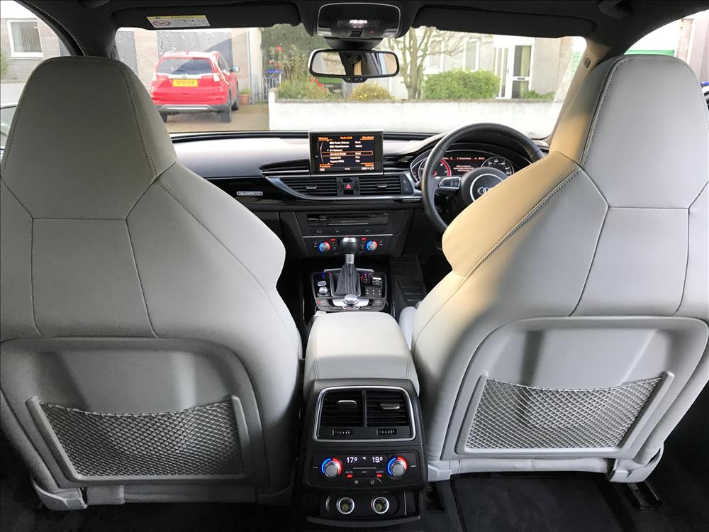 Nardo Grey. 28k mls. Dynamic pack. Sports differential. Sports exhaust. Led high beam assist headlights with headlight range adjustment. Electrically folding adjustable and heated mirrors with anti-glare. Parking system plus front and rear with rear view camera. Panoramic glass roof. Matt aluminum styling package including air intake duct with Quattro logo. Privacy insulating glass. Matt aluminum roof rails. Keyless Start. Valcona leather honeycomb-quilted design with rs6 embossing on the front seats with memory function. Electric 4-way lumbar support. Multi-function Heated steering wheel with paddles. Heated front seats front centre armrest. Heated Rear seats with arm rest, cup holder & first aid kit. Inlays – piano black finish. Door mirrors with memory and auto dimming function. Bose® surround sound. Advanced key. Bluetooth phone connection. Mmi navigation plus. Dab radio. Remote electric boot opening/closing. LED RS6 illuminated sill plates.