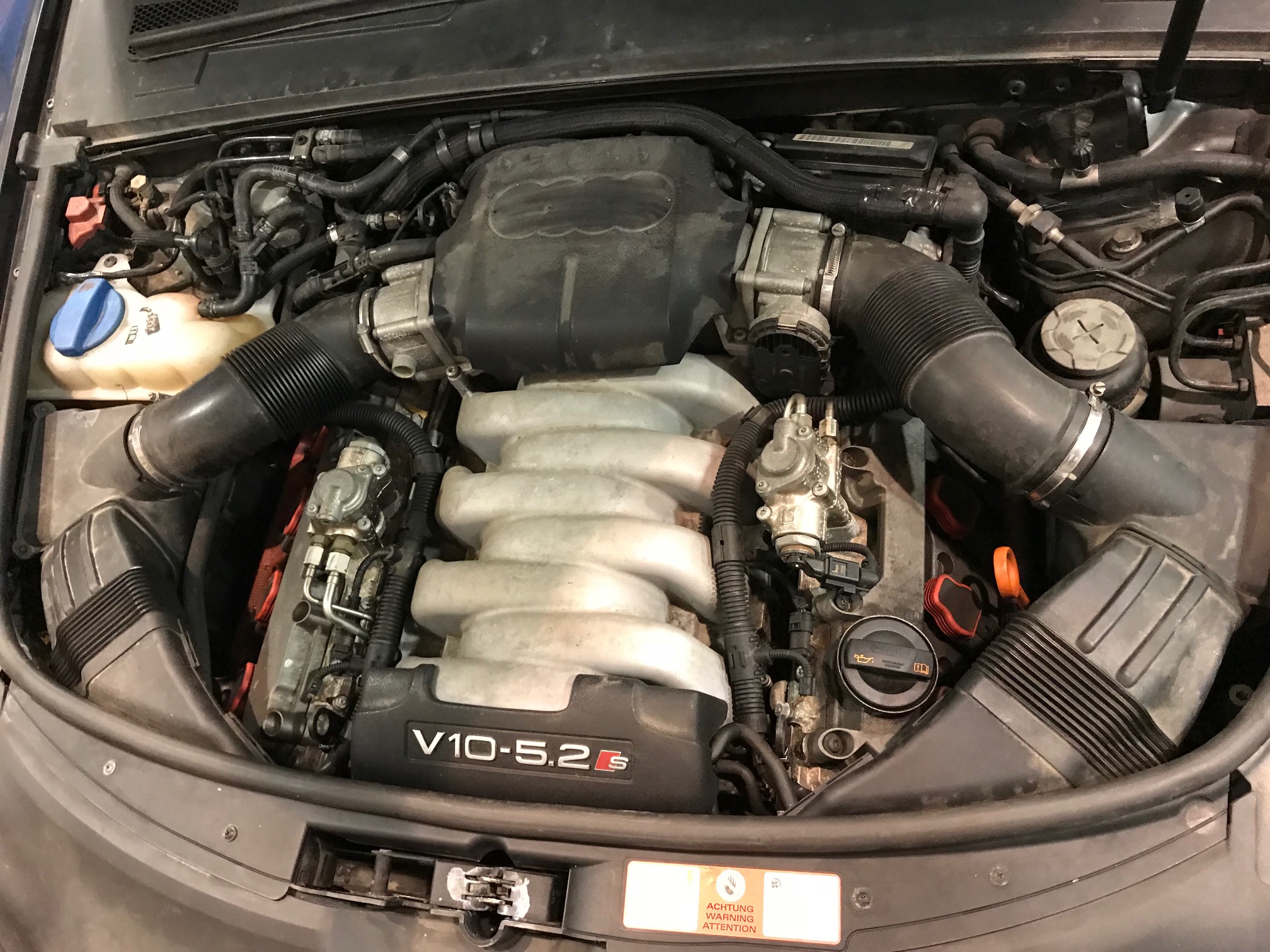 Lamborghini V10 engine as fitted to the R8. 5.2 litres - Mentioned but not present.