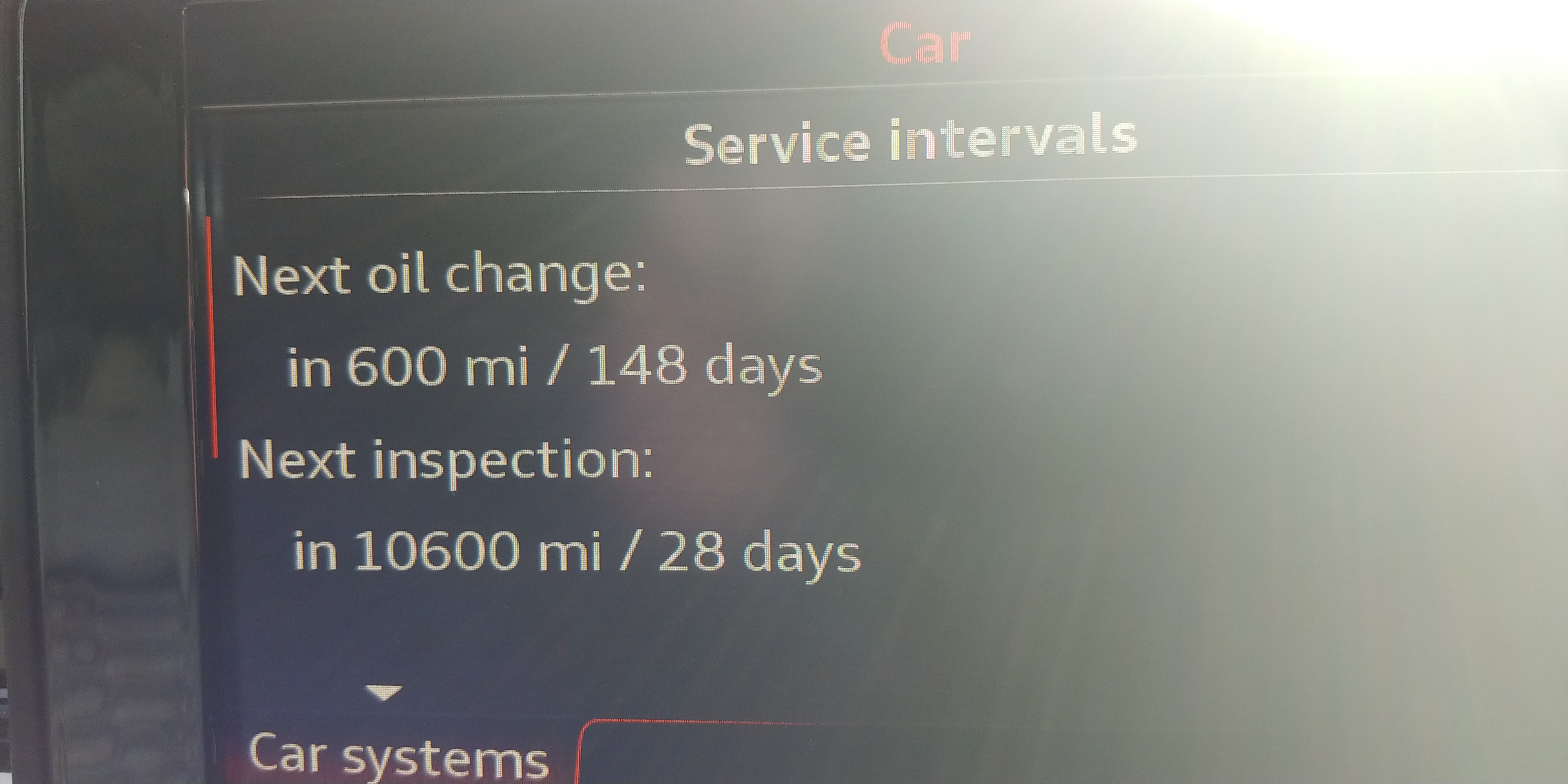 I think his concern is the inspection due in 28 days. Most likely brake fluid, spark plugs or similar as it doesn't look like an oil change is due. Not sure how they tell the car it has been carried out though, didn't think it was that intelligent for service reminder resets but seem to recall brake fluid change being the cause of this before.