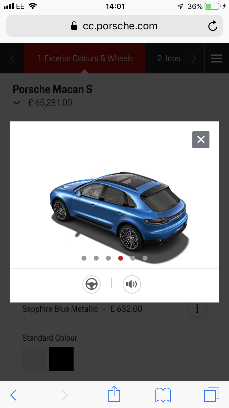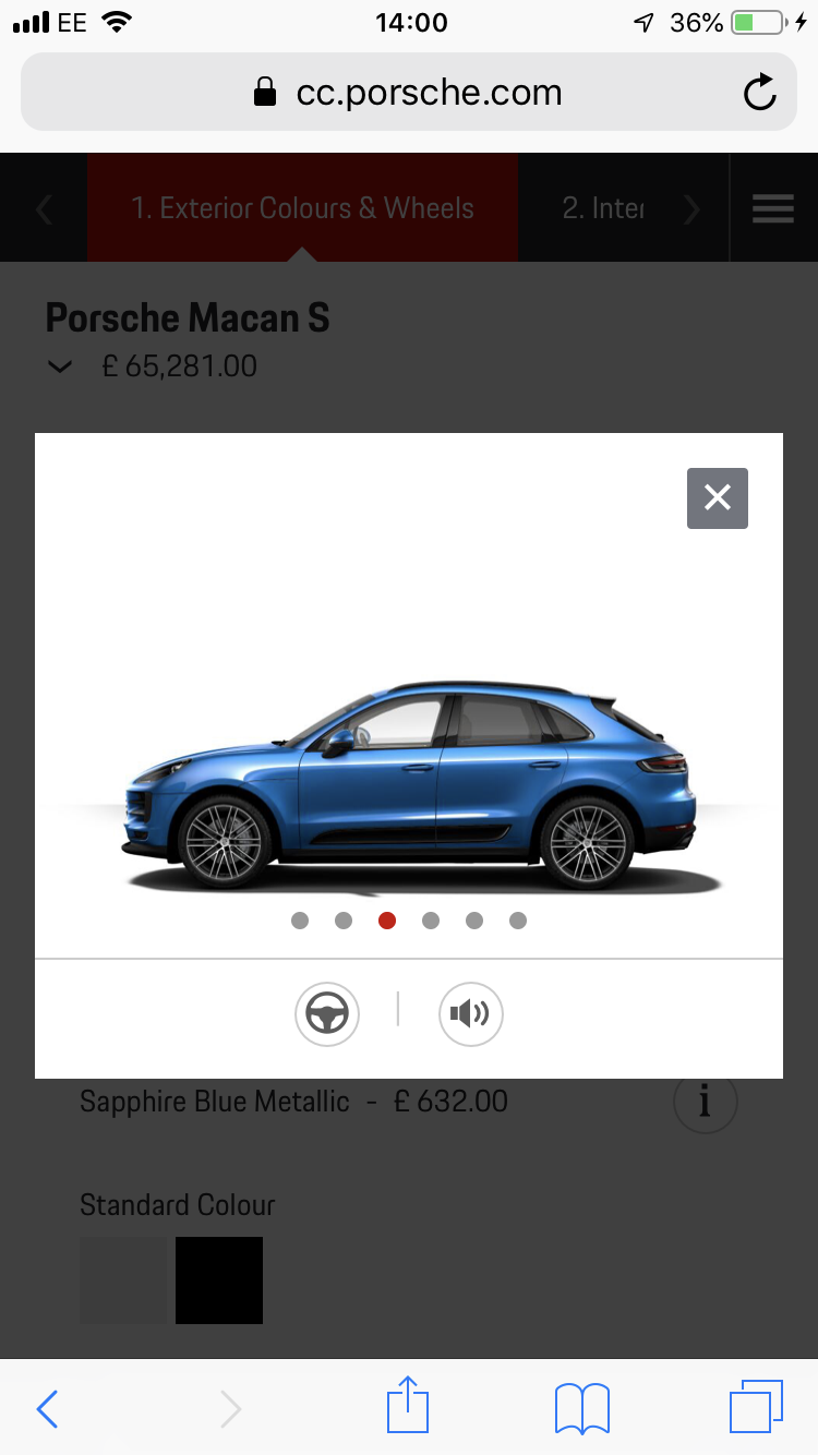 Go look at a Macan in Sapphire blue, it’s a lot of blue! You need to option side blade and rear skirt in paint. Black plastic looks crap.