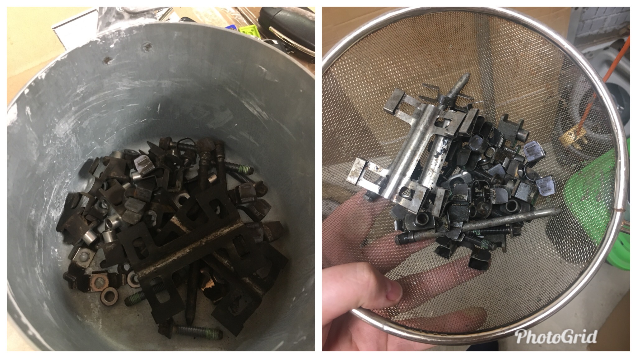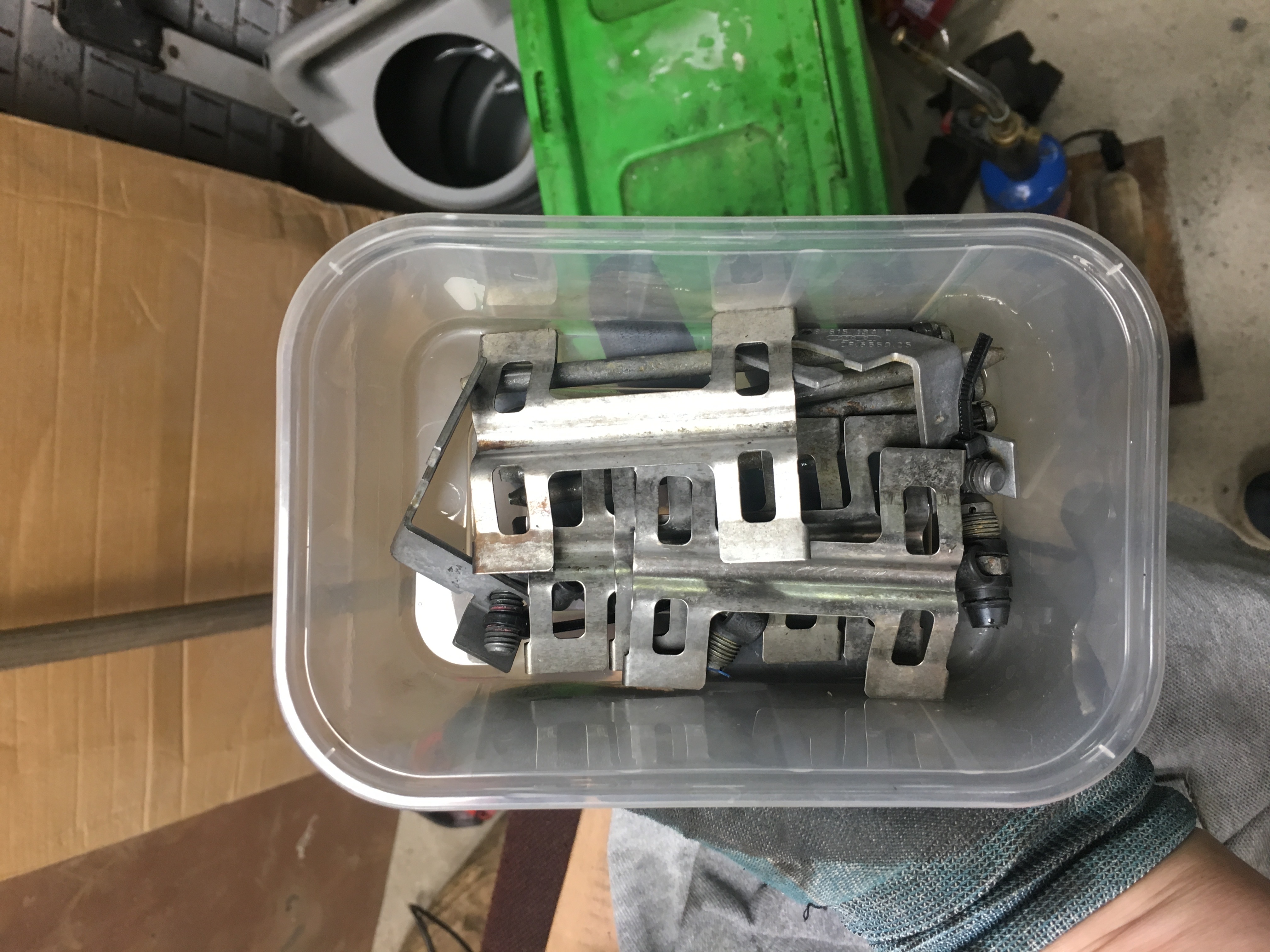 I stripped the front discs down to clean all of the bobbins, nuts and bolts and threw them into a bucket of bilt hamber detox c overnight to shift any of the rust and I must say it's quite impressive stuff, has saved me quite a bit of time so far and I also did the brackets and pad pins/springs.