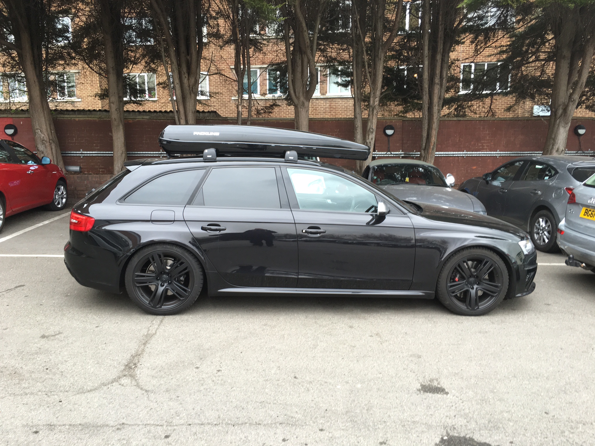 I had a Packline roofbox on an RS4 (see pic) which looked good but the bars going through the box was a faff.