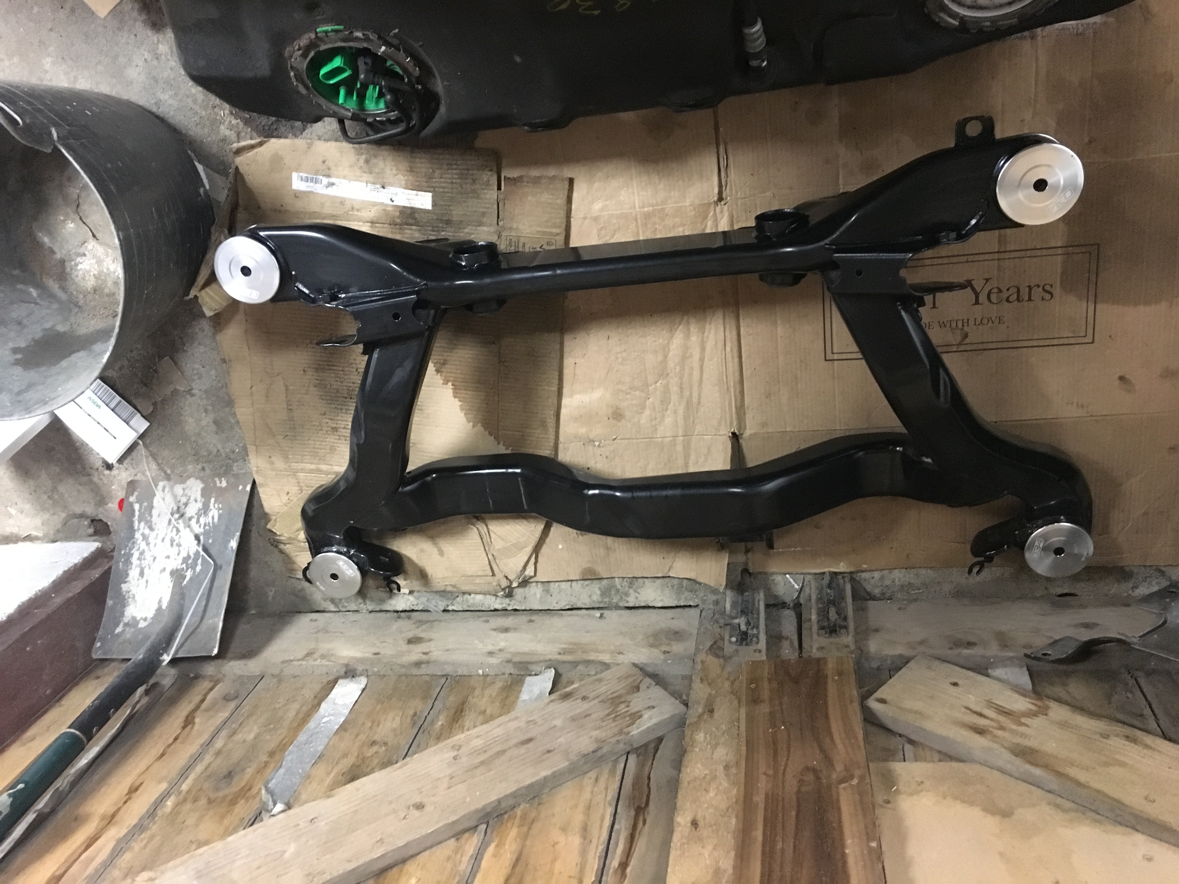 After struggling with the bolts that connect the propshaft to the rear diff I finally got the rear subframe out which wasn't easy on my own!