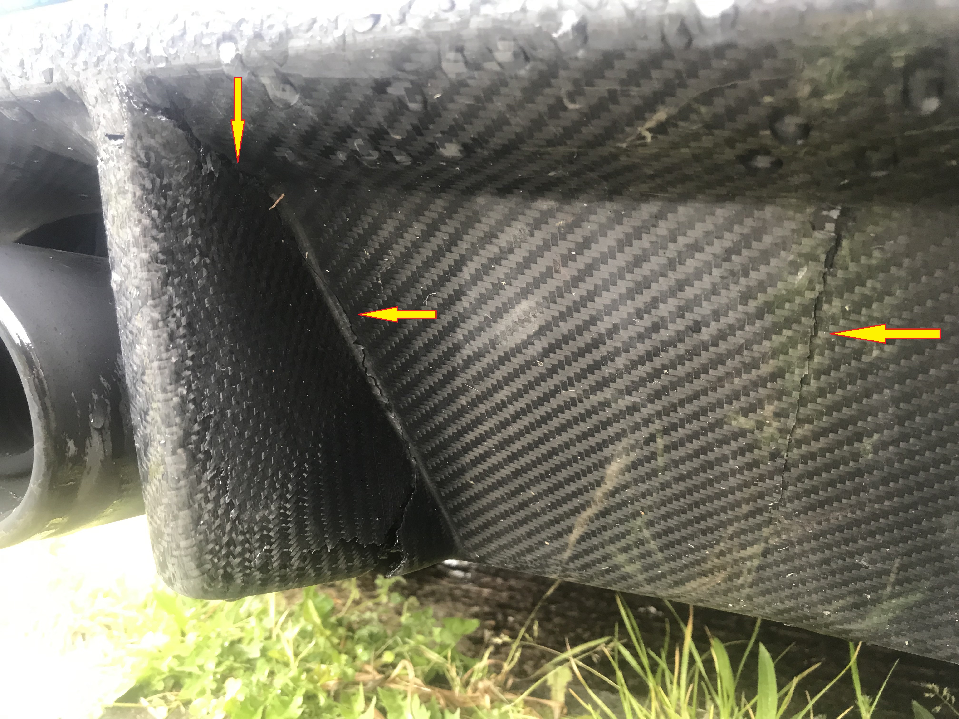well by all means pm me your highest offer as ive only offered this starting today, and see what happenes by this time next week, but please remember everyone that I wont be removing this from the car until or if im sent my new one, so I will require a 50% deposit next week via paypal and just note the cracks may or may not widen when I remove it from the car but you can basically see what your getting. From what I can see, I think just adding fibre glass on the inside will fully strengthen this anyway, as for cosmetics then just adding some carbon over the top would do it, but as I say I know nothing about repairs.
