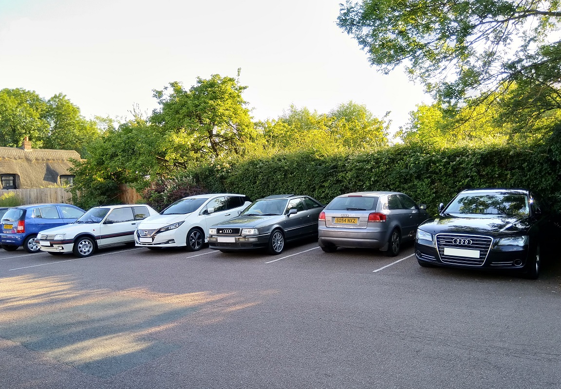The bit highlighted in red on the second map is the road through the pub - you can access from both ends. Congregate at the north end of the car park - the four spaces by the red arrow are the biggest for A8s + RS6s etc