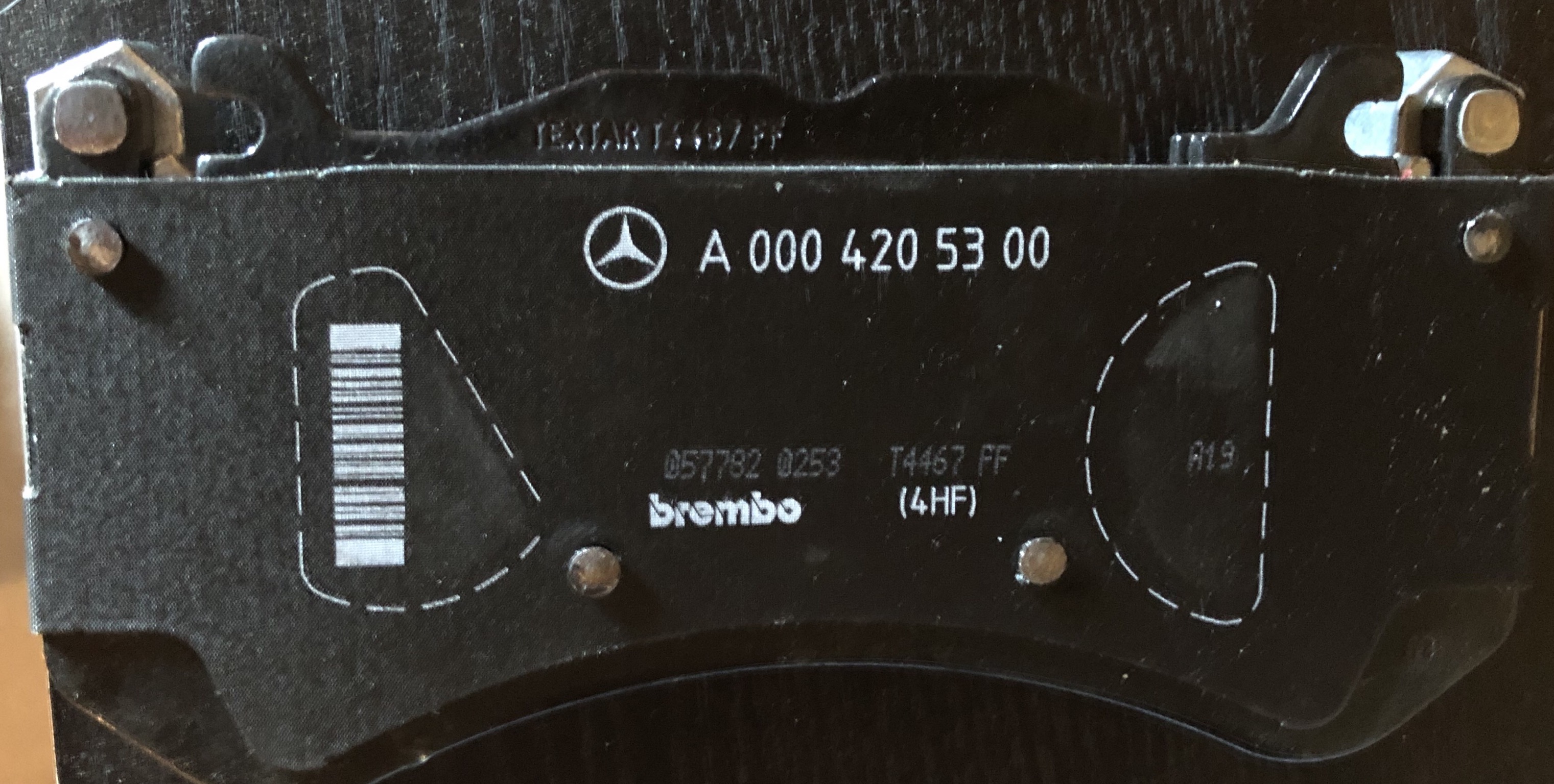 My Mercedes and Brembo marked pads bought from the MB dealer are stamped as made by Textar. (Above MB star)