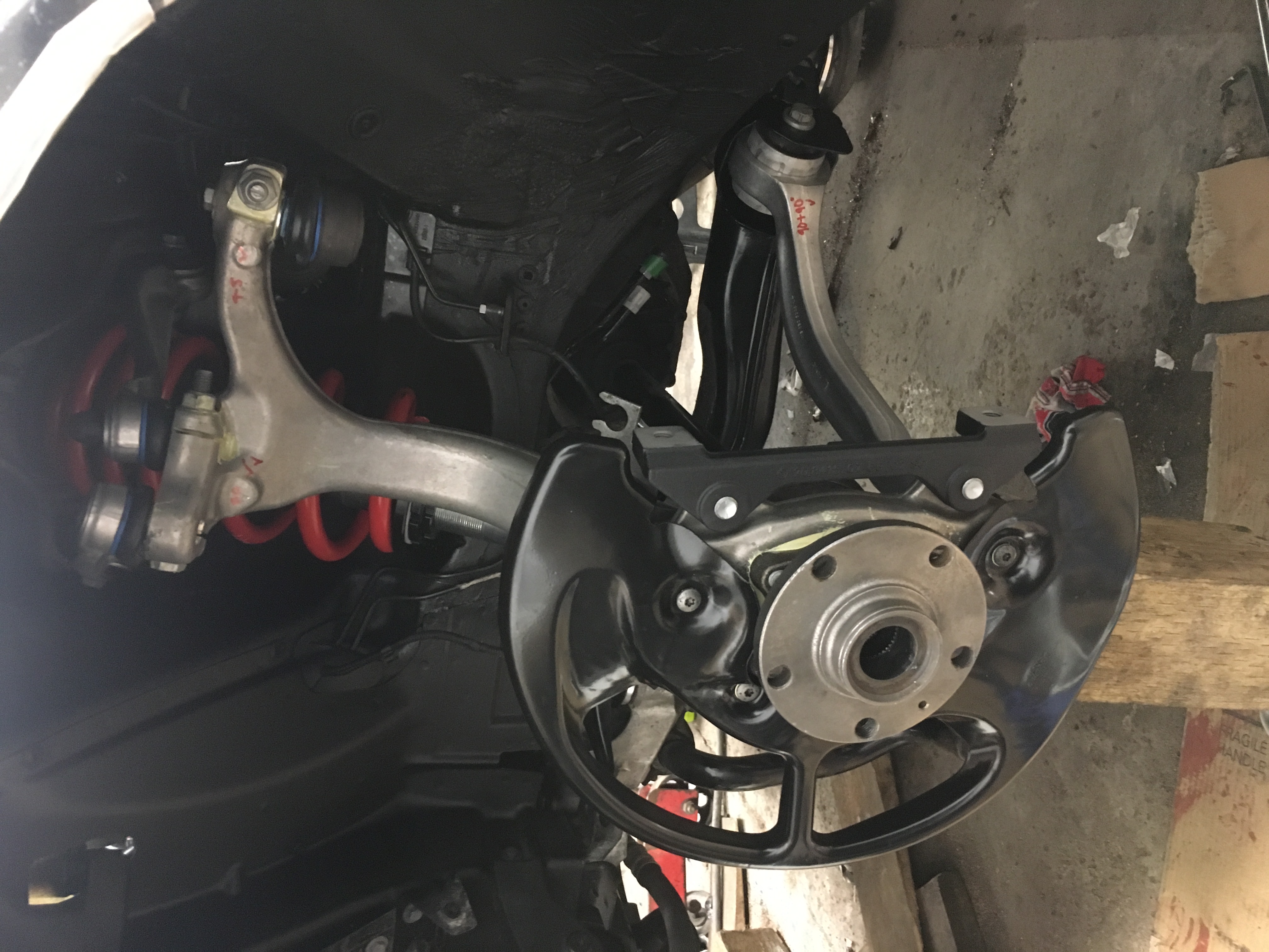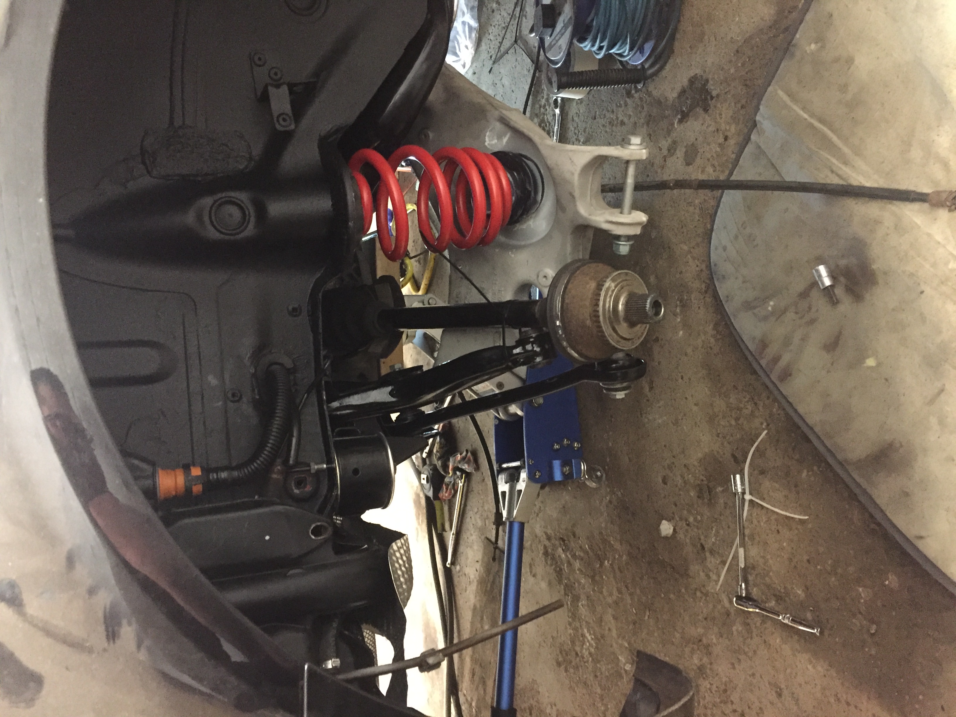 Subframe back on the car and now has the coilovers, hubs and coilovers fitted again with all new bolts.