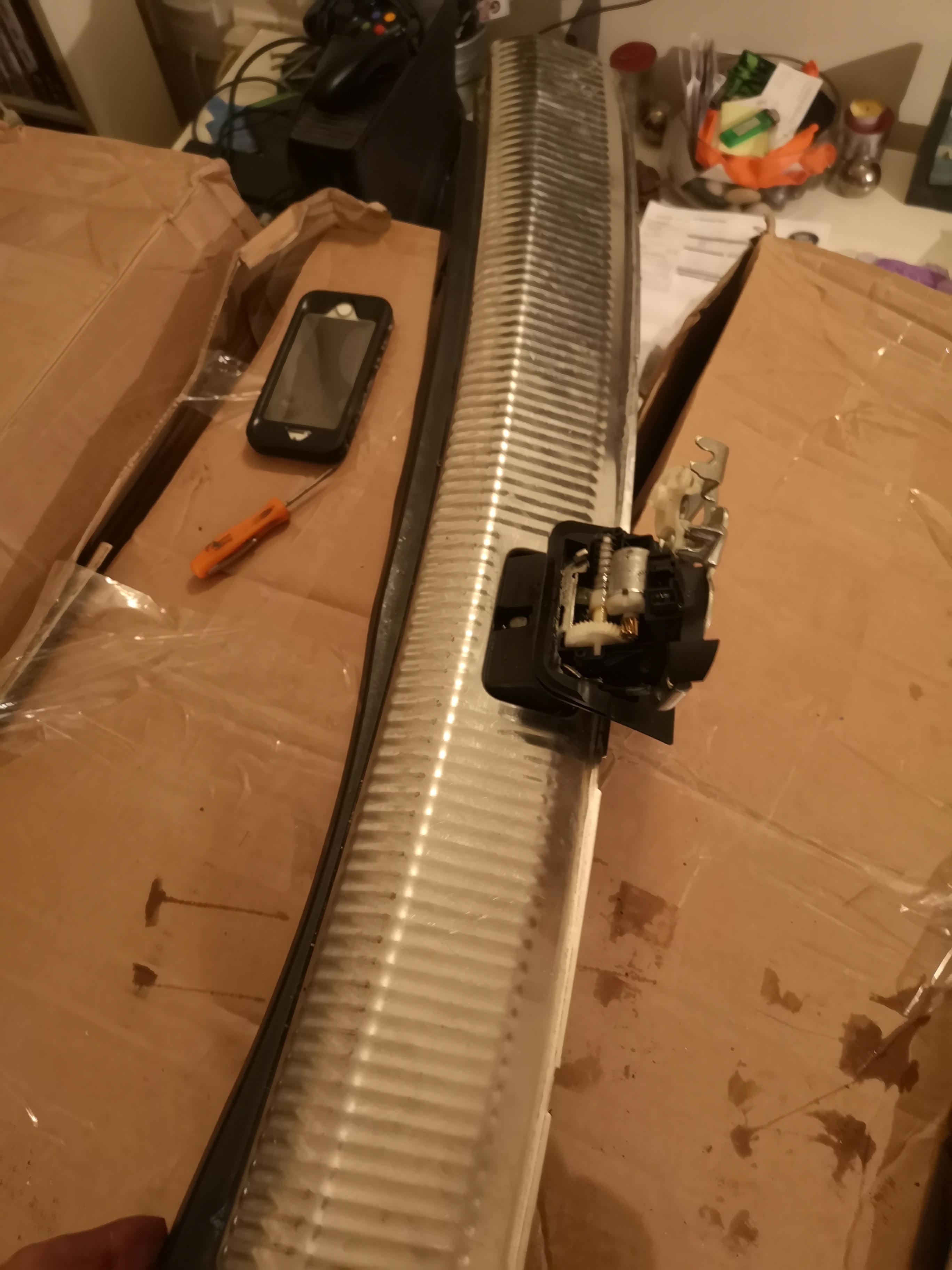 Cleaned and greased latch and removed as much of the broken glass as possible. Left trim off as some glass in centre of boot I can't get access to behind skin. Hopefully a few corners will move it to accessable points.