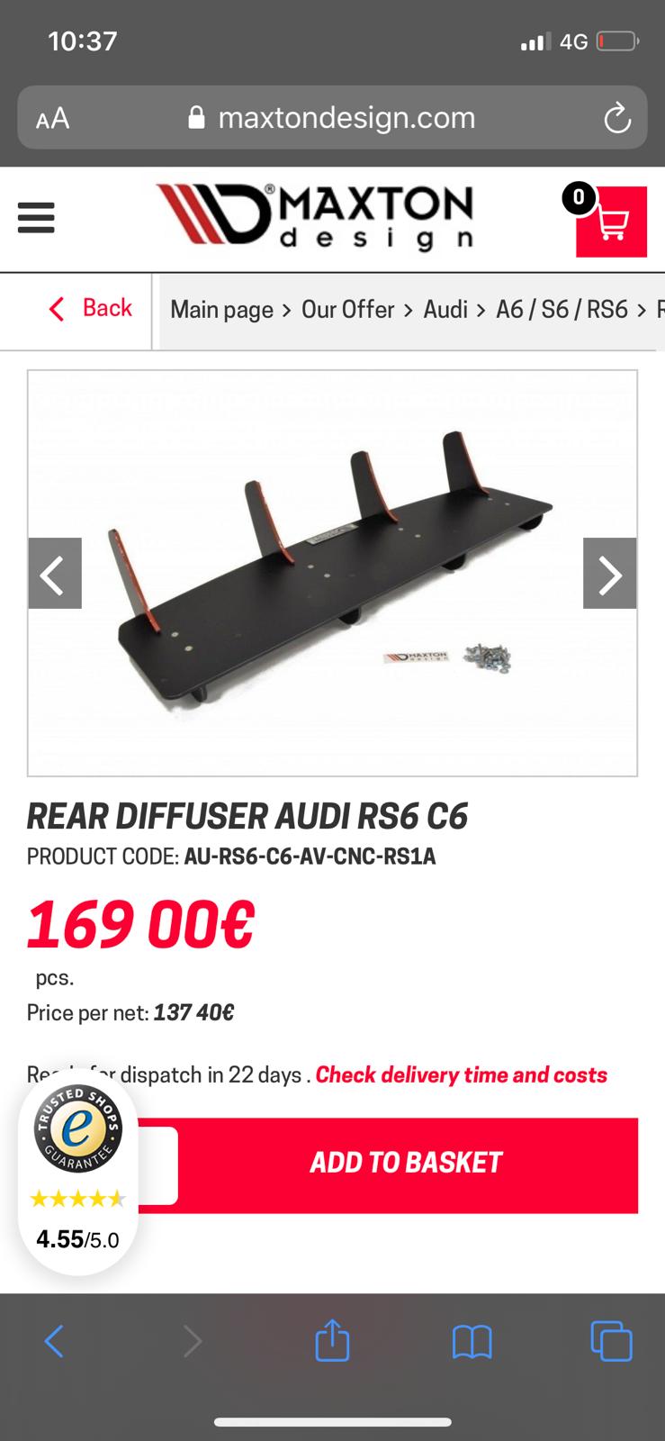I have falling in love with my recent Audi RS6 C6 but am after a rear diffuser (not MAXTON as their particular model doesnt fit properly - BEWARE). Do you guys have aby suggestions?