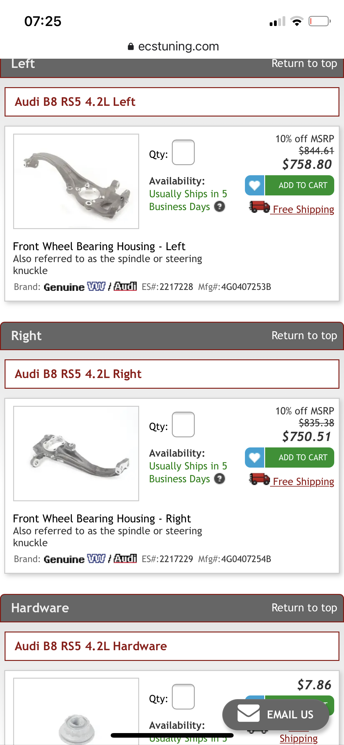 Can anyone help with confirming that the Rs4 B8 front hub carrier/stub axle is the same as the rs5 same year, I’ve found a crack in mine whilst doing the KW’s & found a complete arm local to me & need to build urgently!!!!