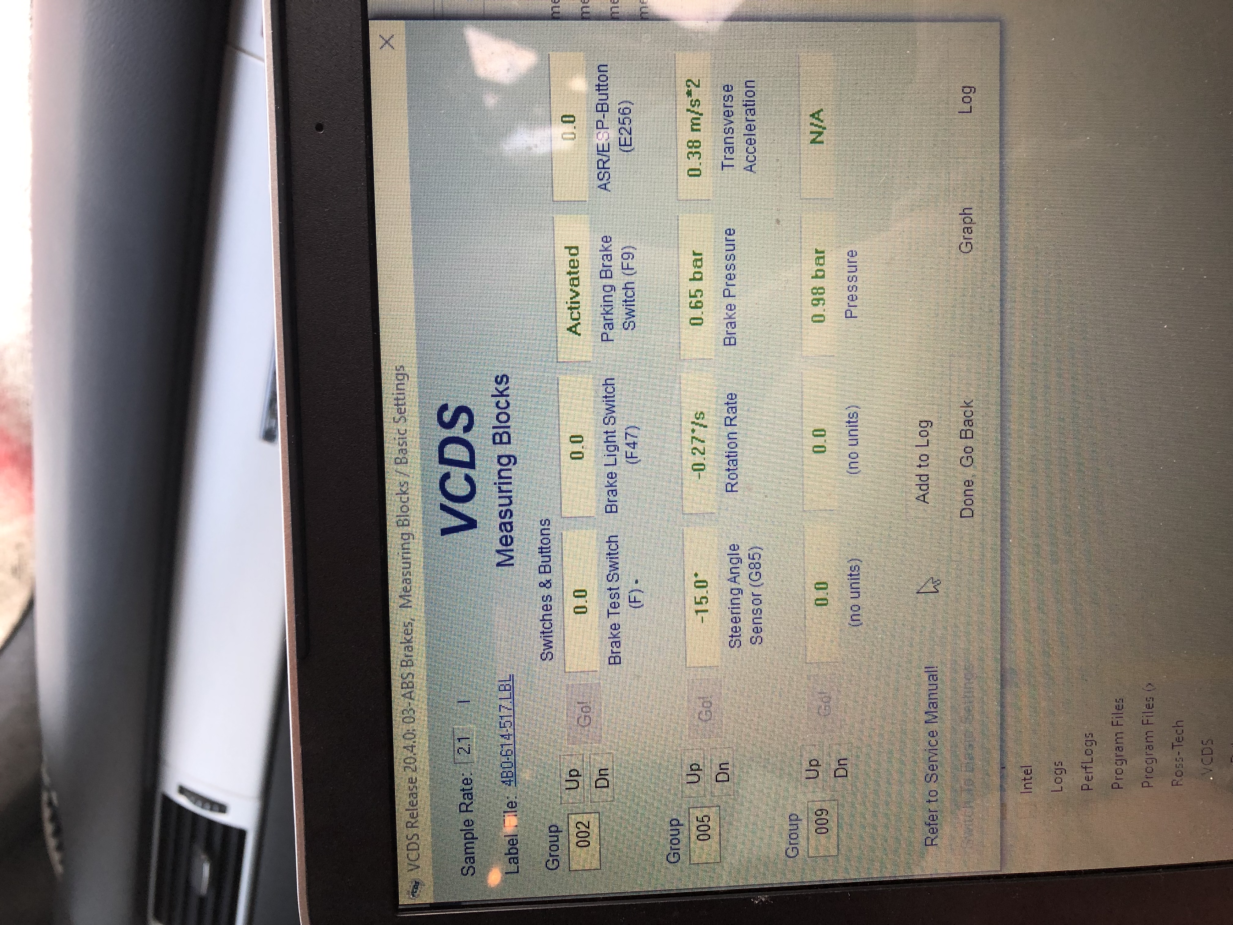 On group 2 brake test and light switch both activate when I press the brake pedal and parking deactivates when I release the hand brake. The only bit that looks a bit strange on this group is that ASR/ESP won’t stay activated. It does activate when I press the button but won’t stay on. I’m assuming this is because I’m in test mode rather than it being an issue?