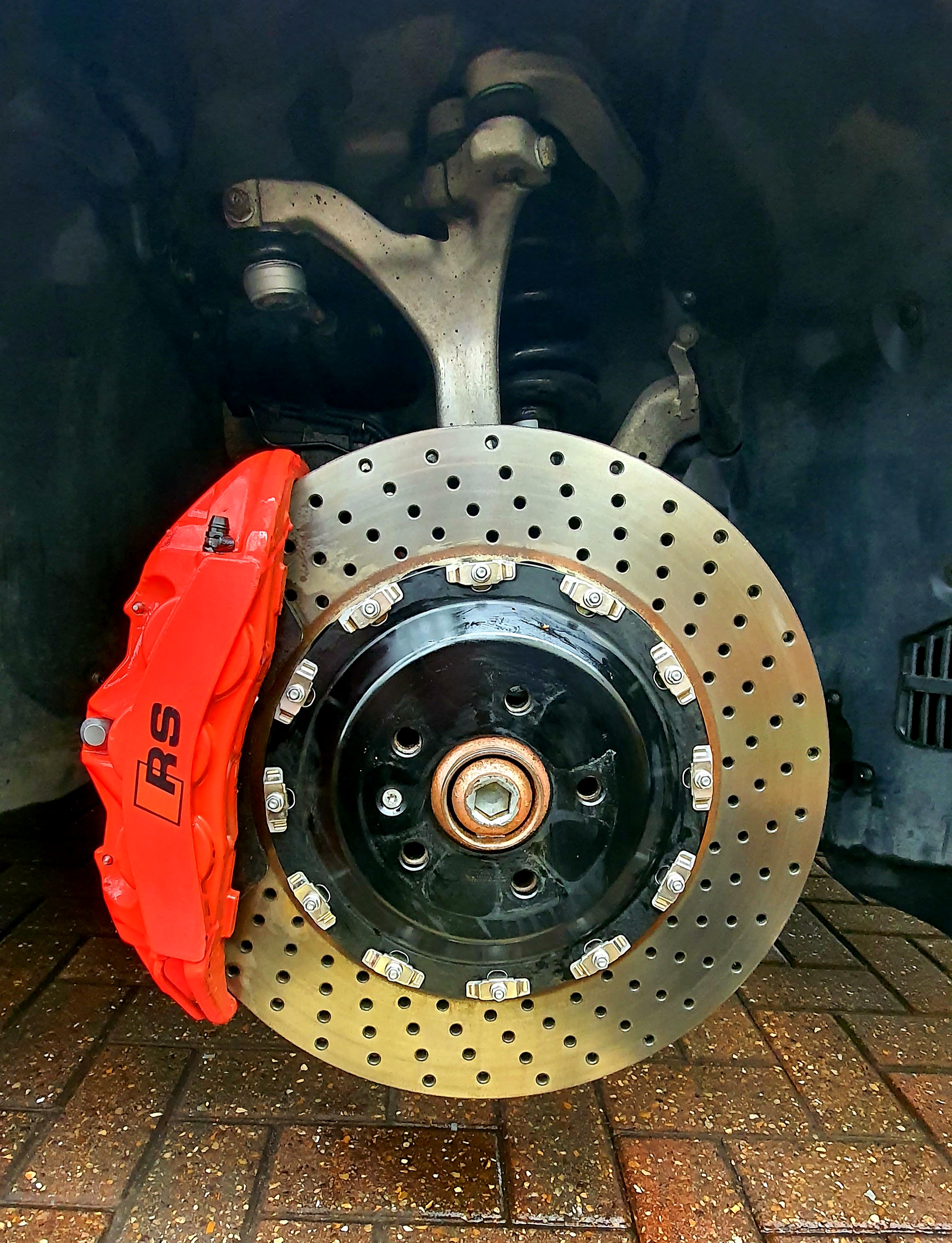 My thread used a different caliper by AP Racing so my particular bracket wouldn't fit the OEM caliper. However it's good to see that there's only a very small unswept area on the 410mm discs using the OEM caliper/pads, say 5mm at most, which means swapping from OEM isn't really necessary which is a bonus as the OEM Brembo calipers are bloody good!
