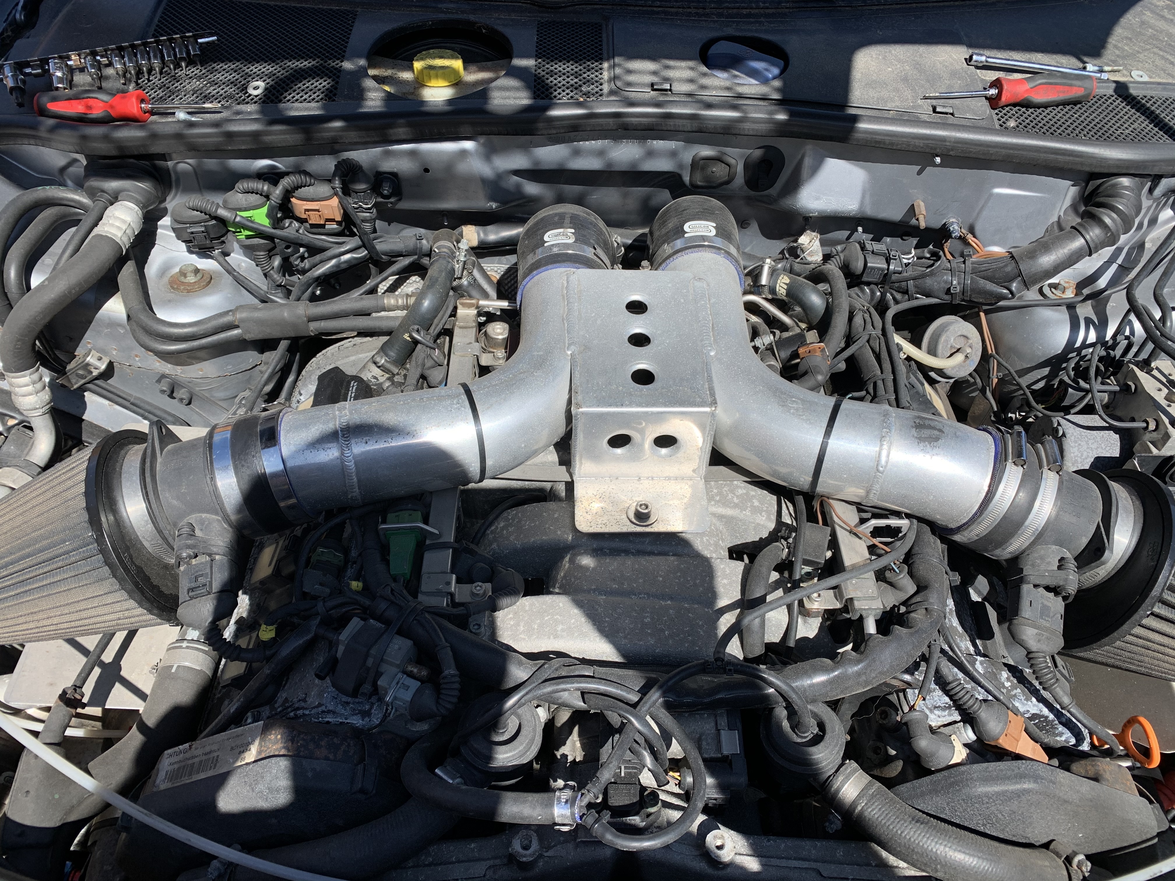 Good god I’ve never seen so many cable ties!! And why is there a breather coming out the rear cam cover on the left bank?bilko1 wrote:Forgot to post the engine bay picture a while ago so here it is (not pretty) For those of you with keen eyes check out the rocker covers and tell me whats strange