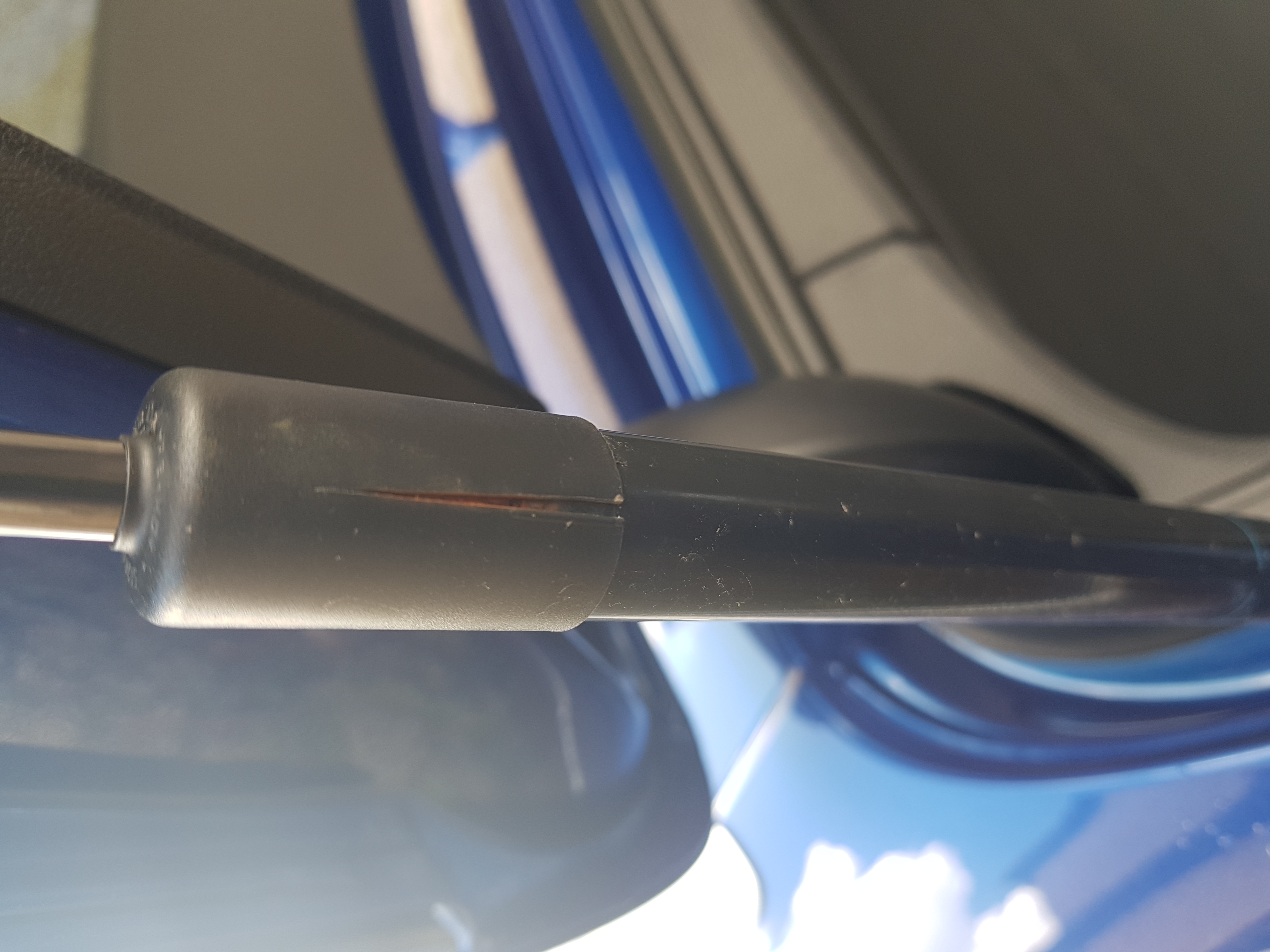 Cleaning the RS last weekend, I noticed corrosion on the tailgate struts under the cap / cover where the piston rod enters the strut body. It had split the plastic covers on both sides. Appears that rain water in the tailgate aperture had naturally dripped onto the strut and then got trapped inside the cover causing the corrosion. When the tailgate is shut the cover is at it lowest point.