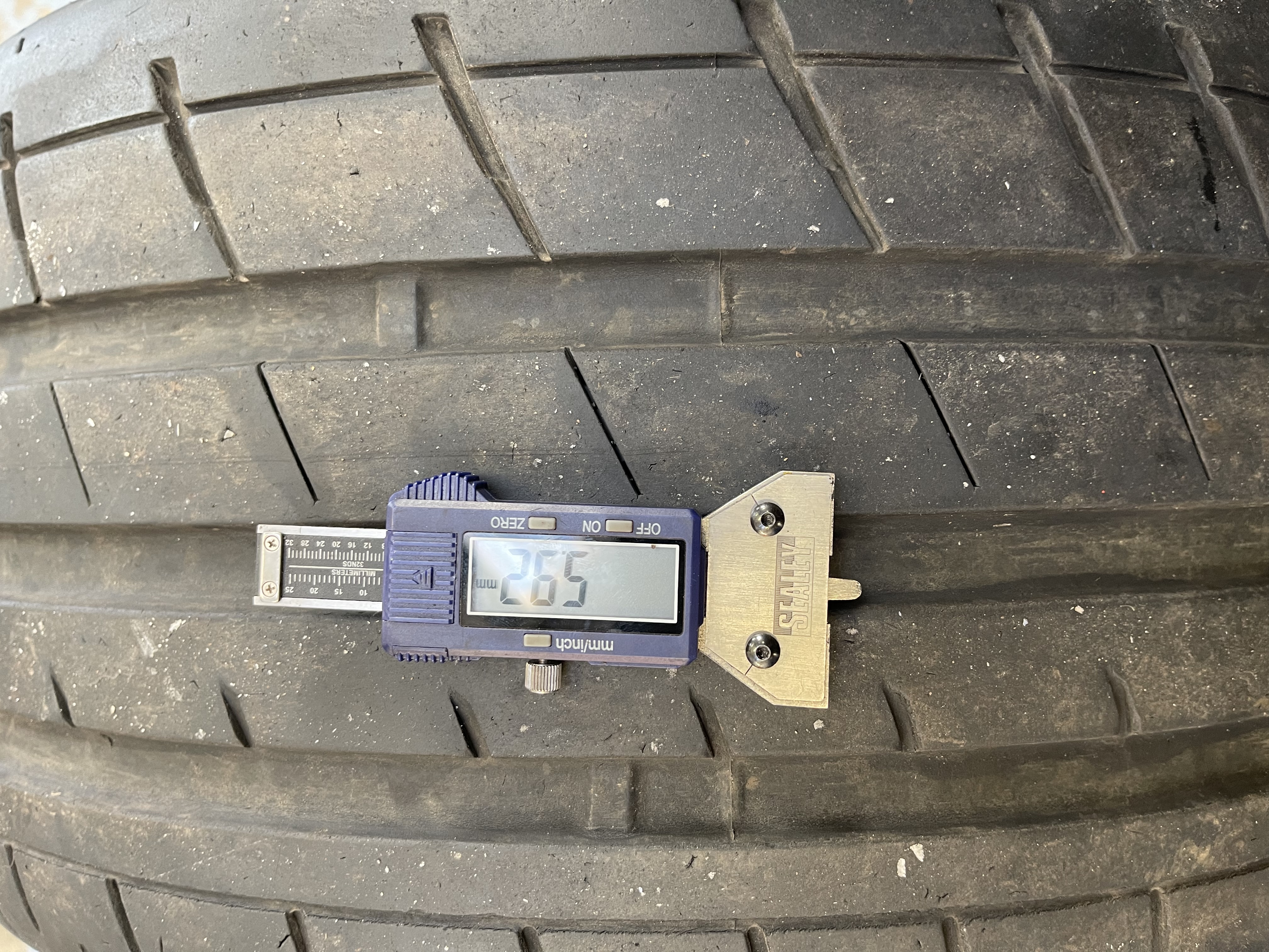 X2 265/30 zr 20 94 y super sticky Bridgestone potenzas S007.these have a slicker outer edge with larger blocks, presumably for extra grip. Feel very stiff tyres.