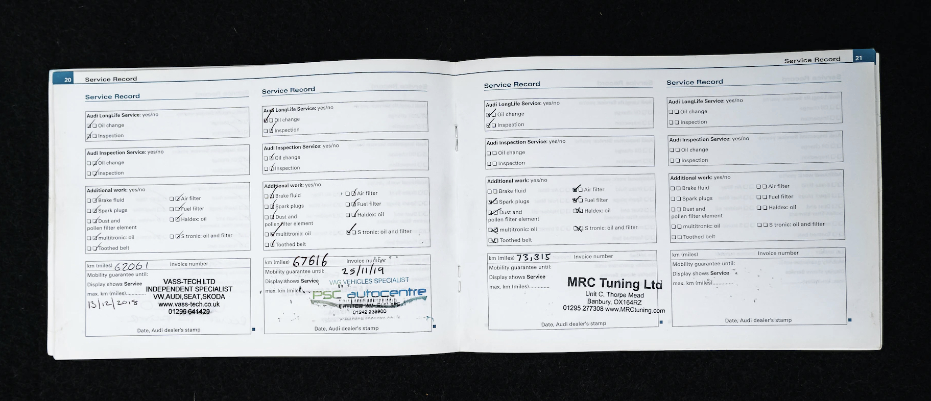 The oil level sensor, coolant pipes and oil pump drive seals were replaced in October 2017 at 59,189 miles as part of a major service carried out by Audi specialist Unit 20 Ltd. A must in these cars as I’m sure you’ll know if you’ve made it this far!