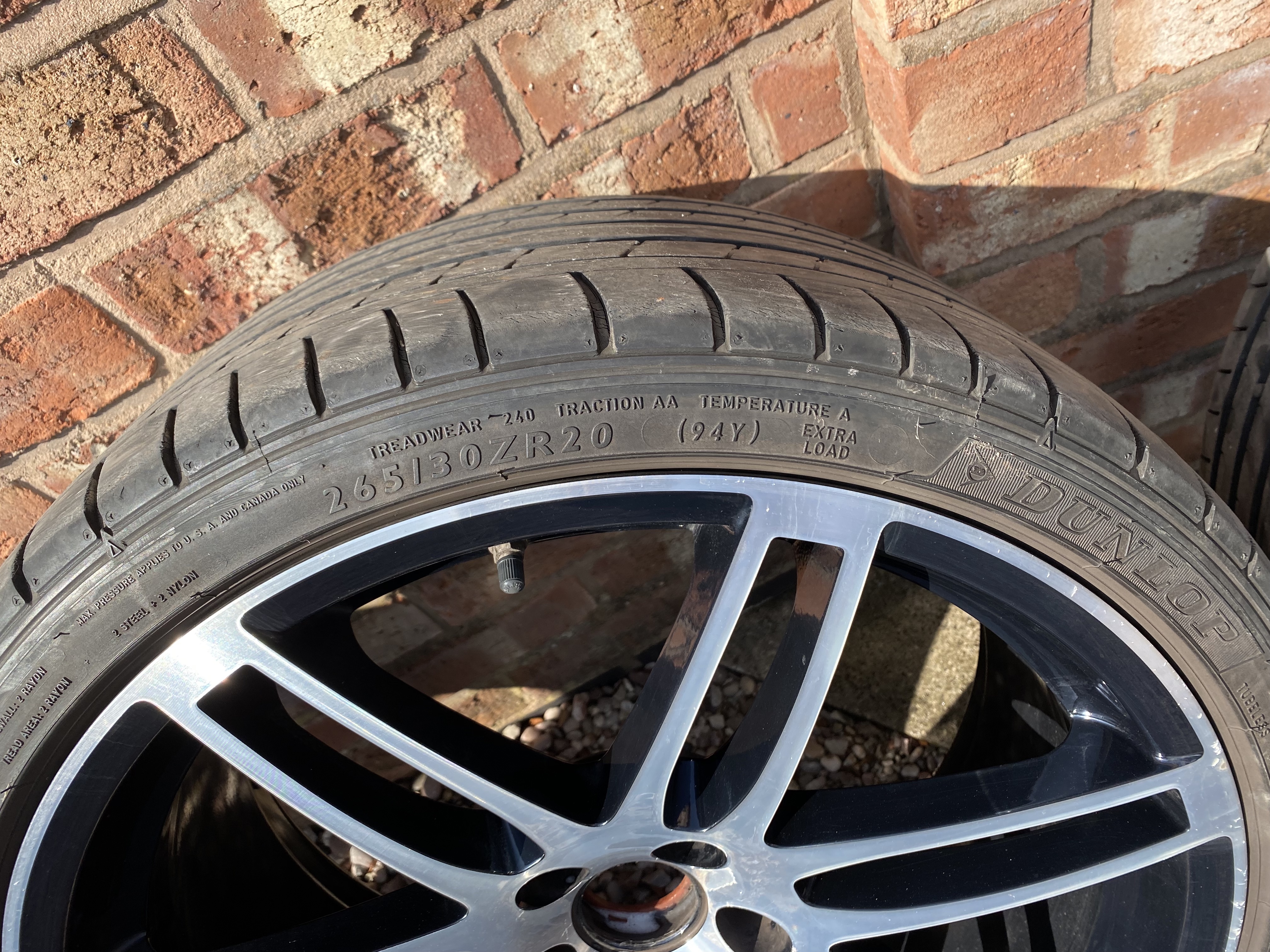 So I have 4 used J9's for sale. They are the S5 Le Mans model. They are still in good condition and have recently been rebalanced by S1 Alloys in Chester (excellent company by the way, who also did the wheel swap for me). They also come with Dunlop 265/30 ZR20 (94Y) which all have at least 4.5mm on them. Wheel details: