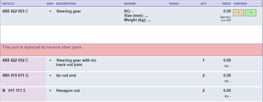 I'm also seeing that people are advertising the 4B8 422 065 rack as fitting the RS6, but then according to the parts catalogue, 4B8 422 065 C is the correct part, and the non-suffixed part number is for the V8 S6, not the RS6. So be cautious on your ebay searches.