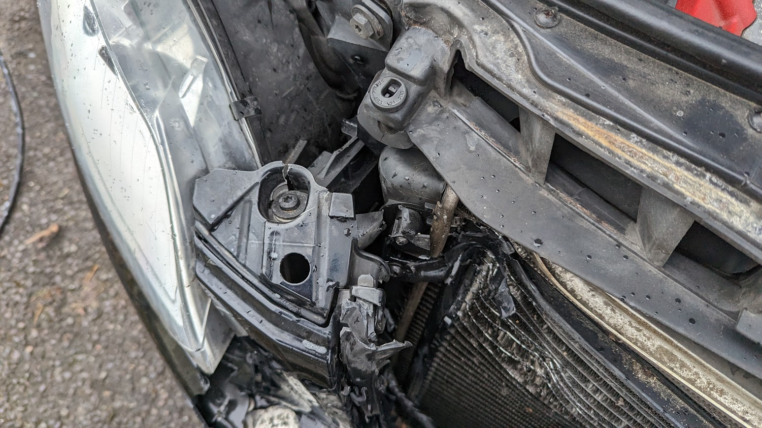 The radiator has gone, bonnet, grille and bumper. Not sure about the headlamps as I haven't really inspected it yet.