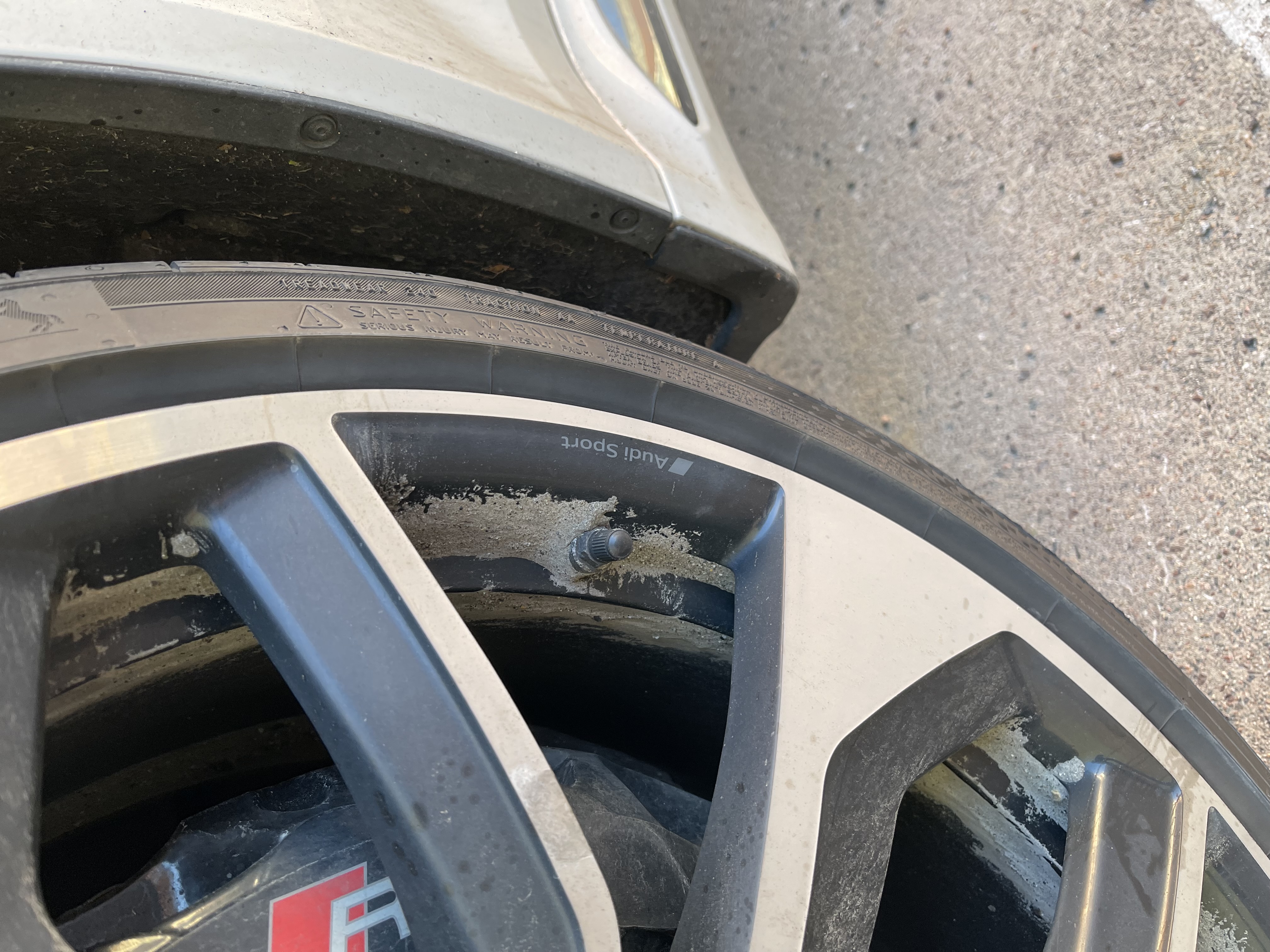 Any how when we stop at our hotel for the night I check the wheels and find I've not lost a wheel weight but have got a build up of very fine road dirt stuck in the groove behind the spokes of the wheels. Also a ring of the same around the inner edge of the barrel of the wheels too.