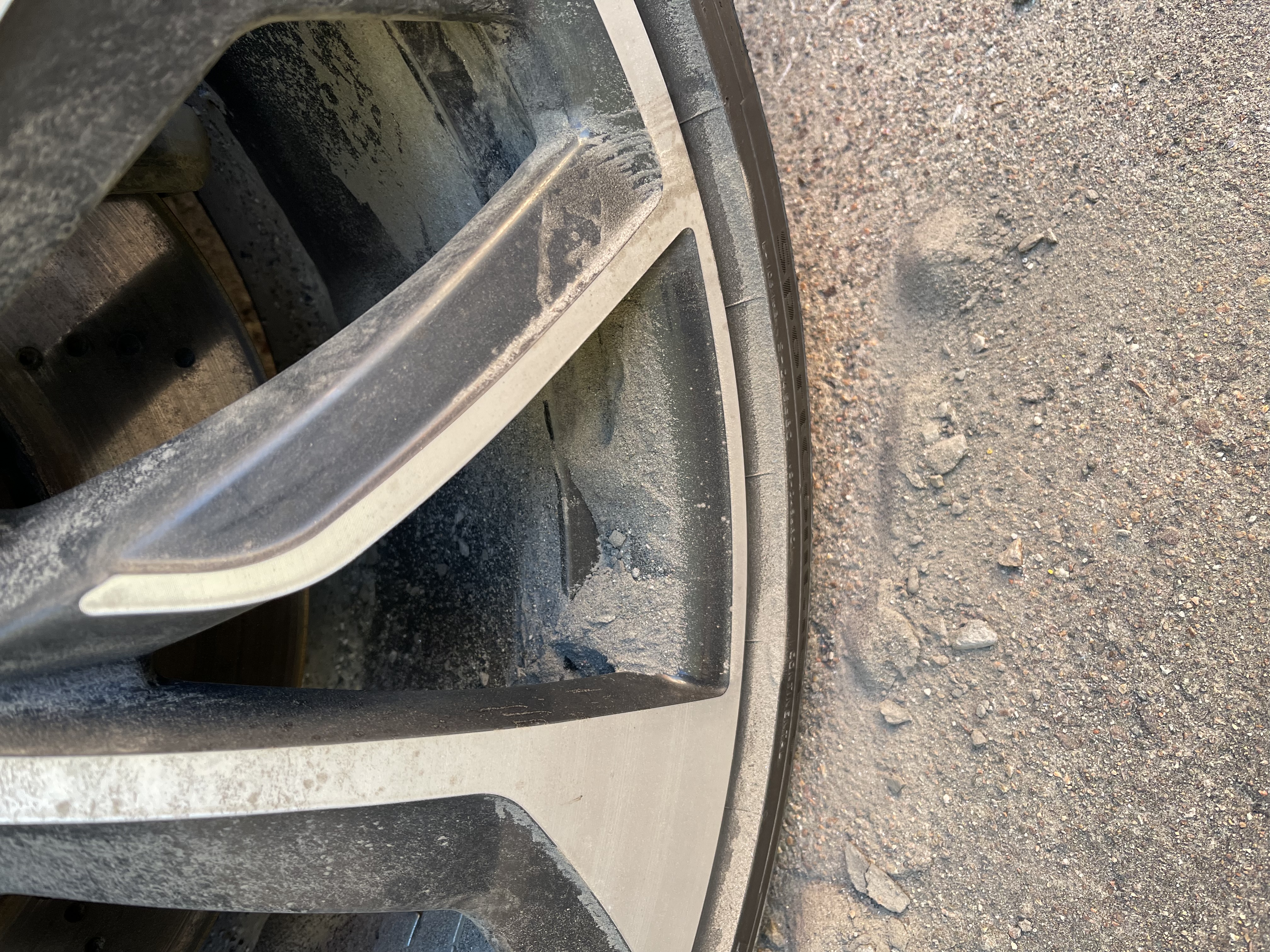 We did drive through a number of road works, it was not cement dust but a very fine road dust that ended up as a light coloured mud that stuck itself unevenly to the wheel rims as it dried.
