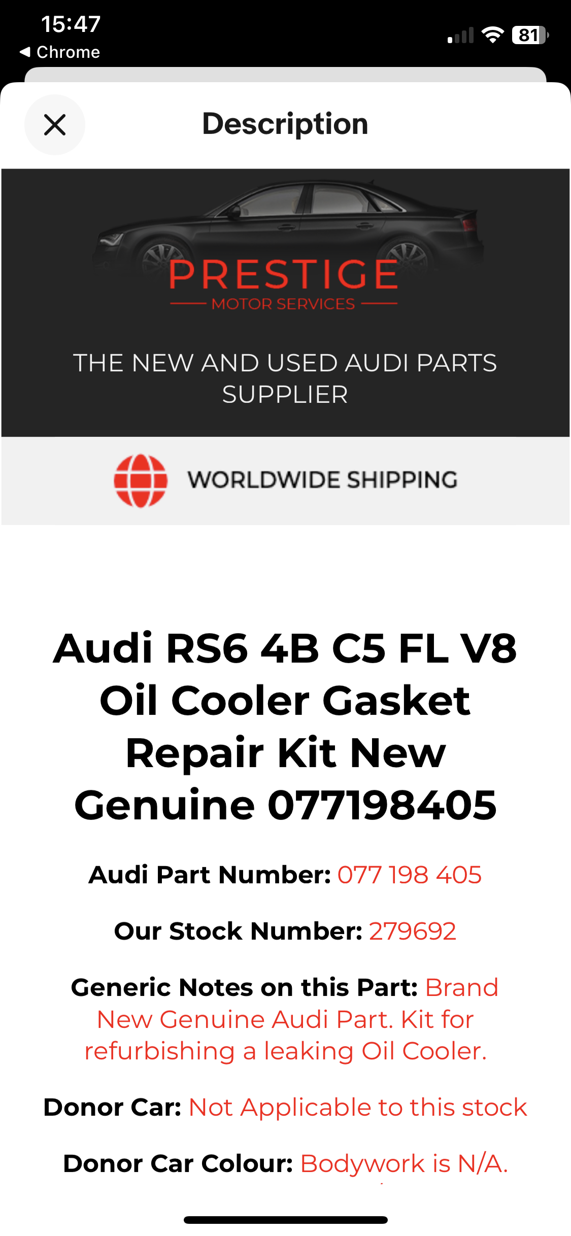 Approx 1/10 of a RS6 unit.
