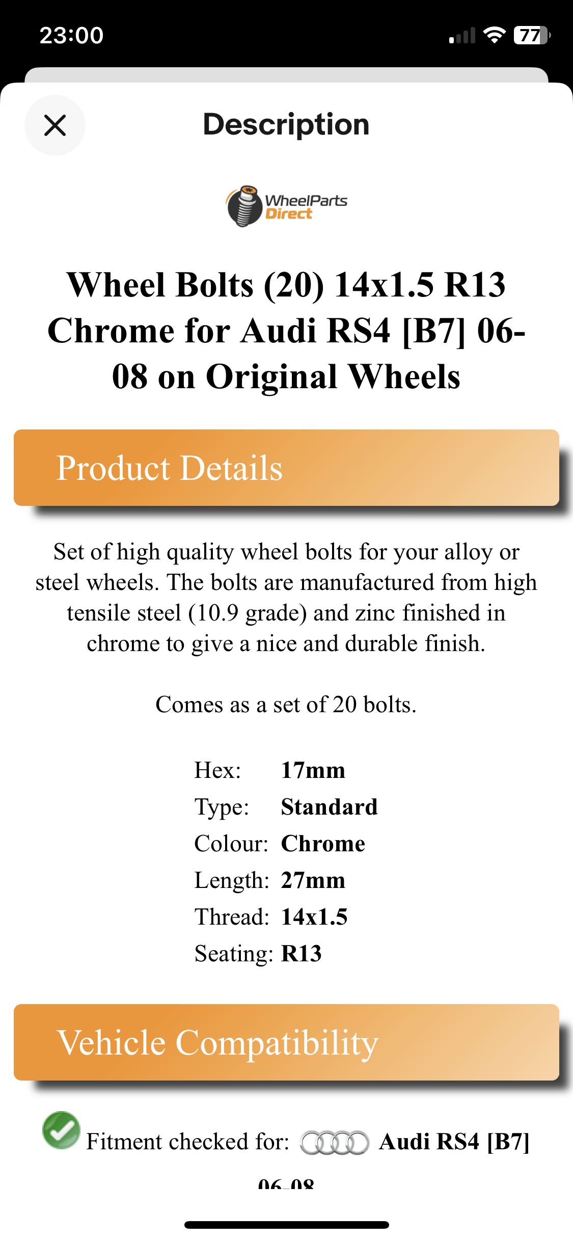 Both companies say that their bolts are compatible with the RS4 B7 alloy wheels.