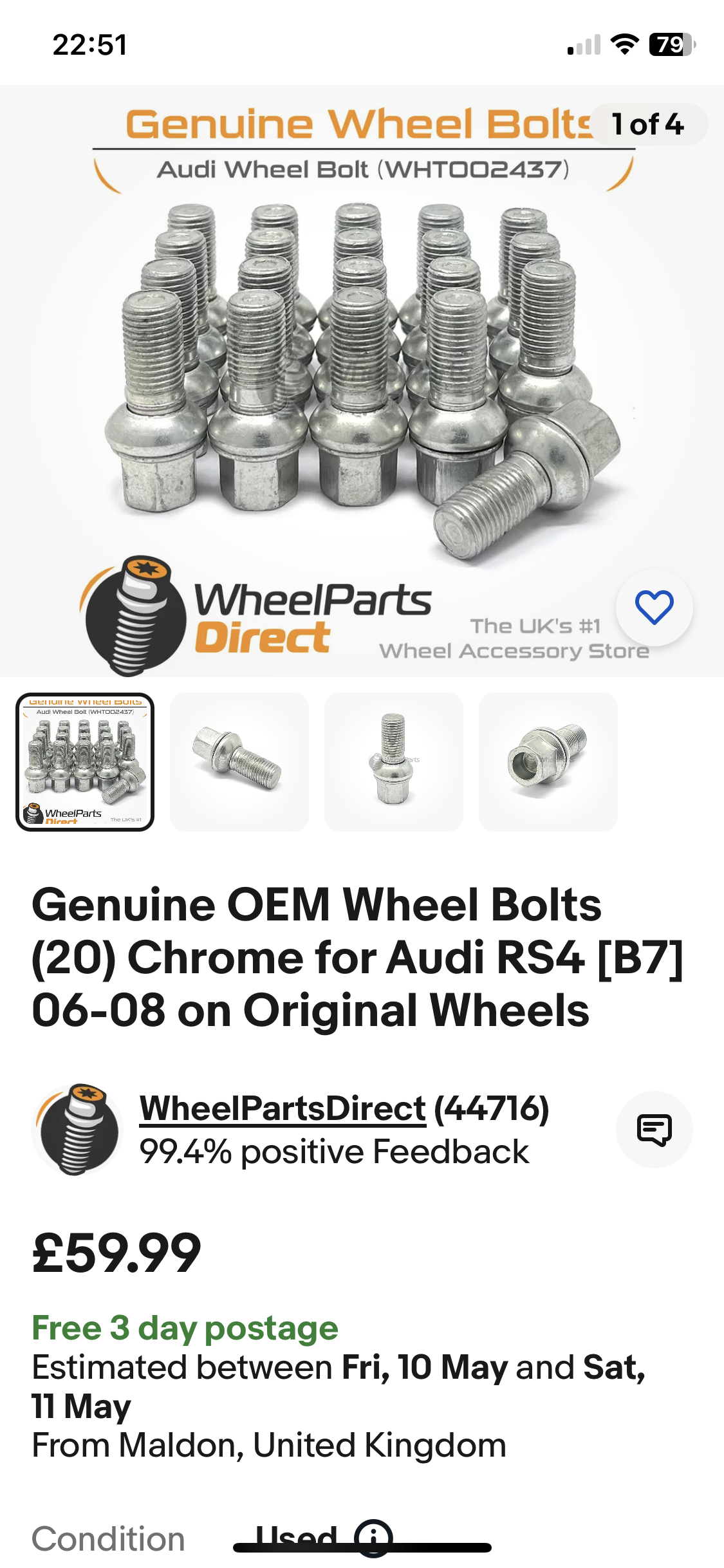 Also states that they are RS4 B7 OEM bolts.