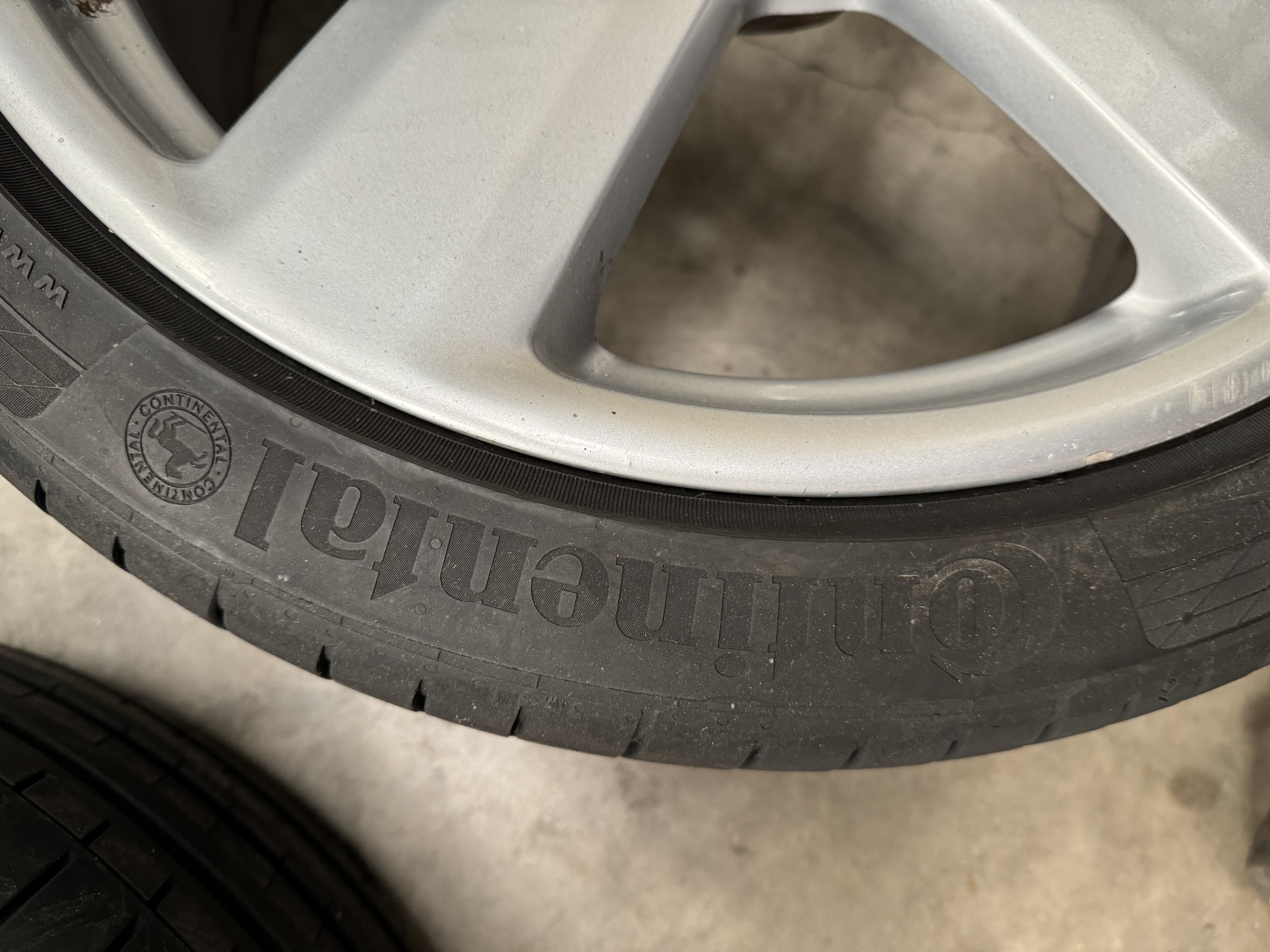 They come with 2x Continental ContisportContact 5P and 2x Vredestein Ultrac Vorti but one of the tyres has inner wear and needs replaced, one of the other tyres has a couple of chunks out the sidewall, still holds air and has decent tread but overall I would recommend tyres need changed also, you can decide to keep any of these as loose spares as they still have decent tread on the other 2 also