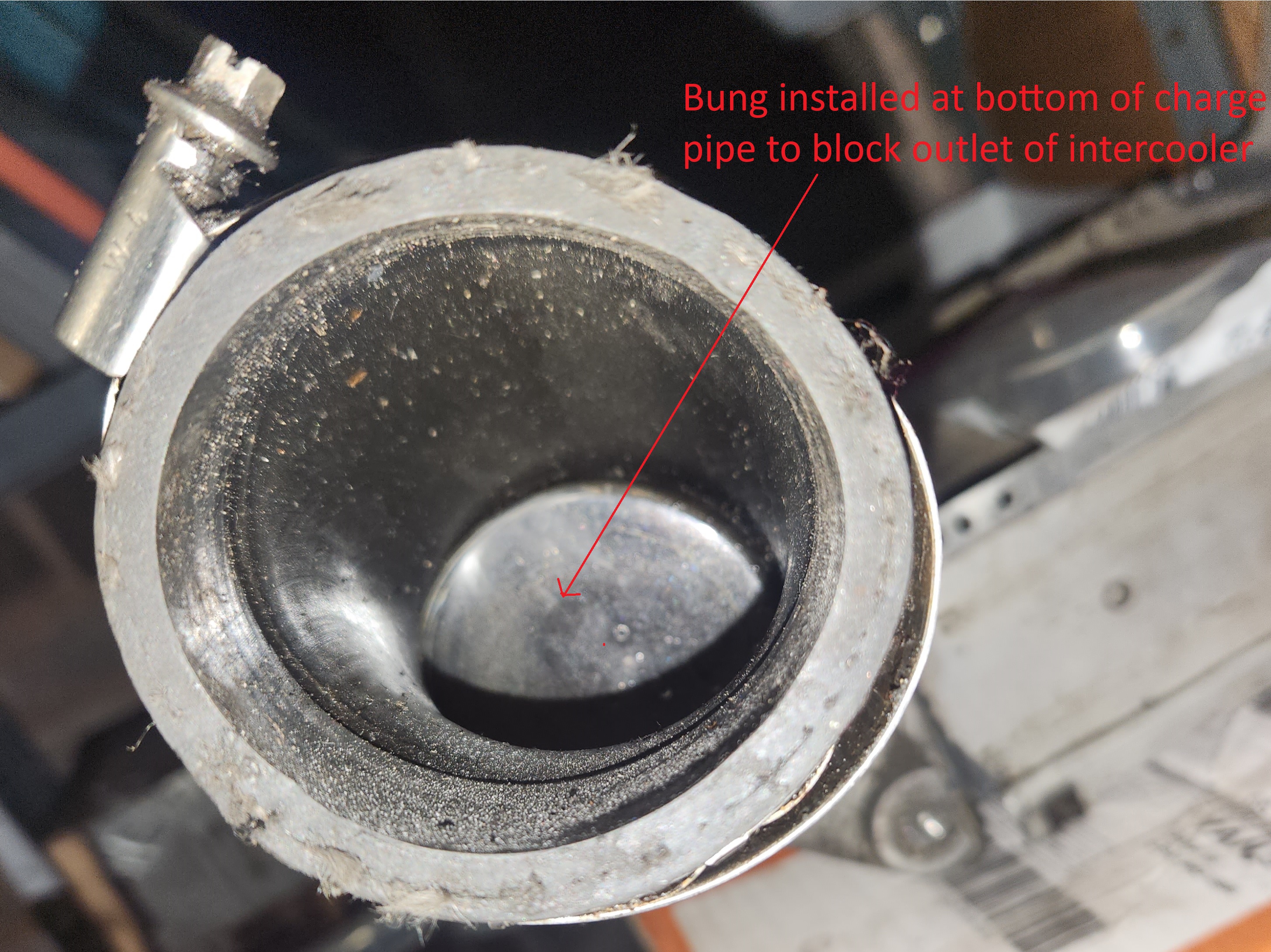 In B&Q they sell plastic cups that you put under the feet of tables etc but they are a perfect fit in the large ends of the intercooler hoses , I used these to seal the hoses to do a pressure test