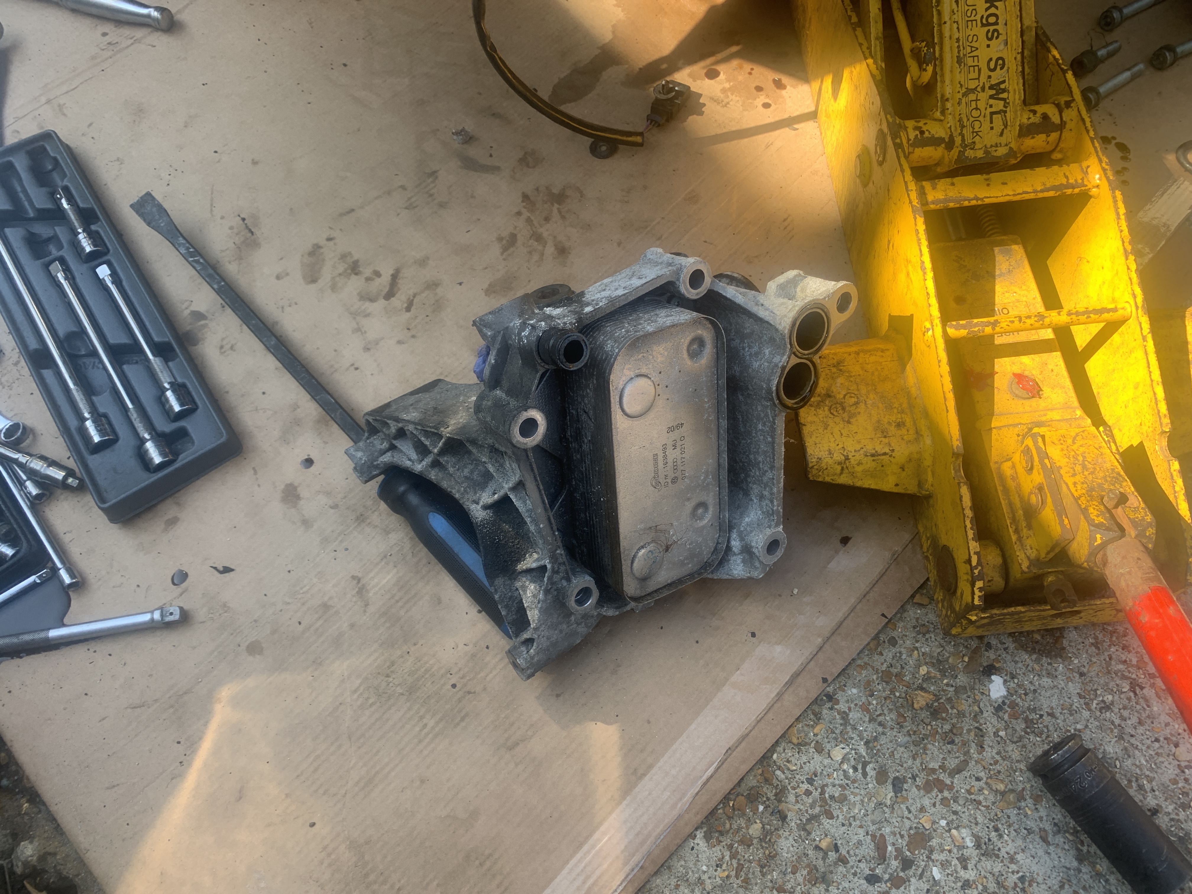 Came out to find a damp spot on the floor on driverside front, my heart sank. I knew straight away what this was going to be. Anyway 5 hours of my life gone so far and its stripped. Surprisingly all seals and pipe still available from Audi / TPS
