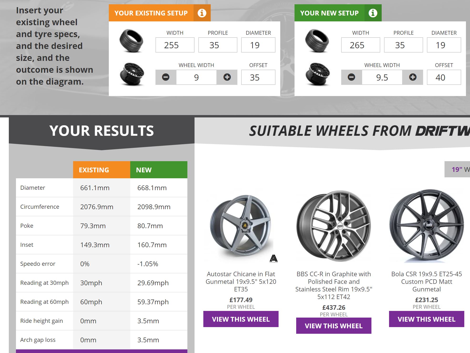 Interestingly when I check on will-they-fit there is no difference in diameter using the 255/35 tyre on a 9.0 vs 9.5.