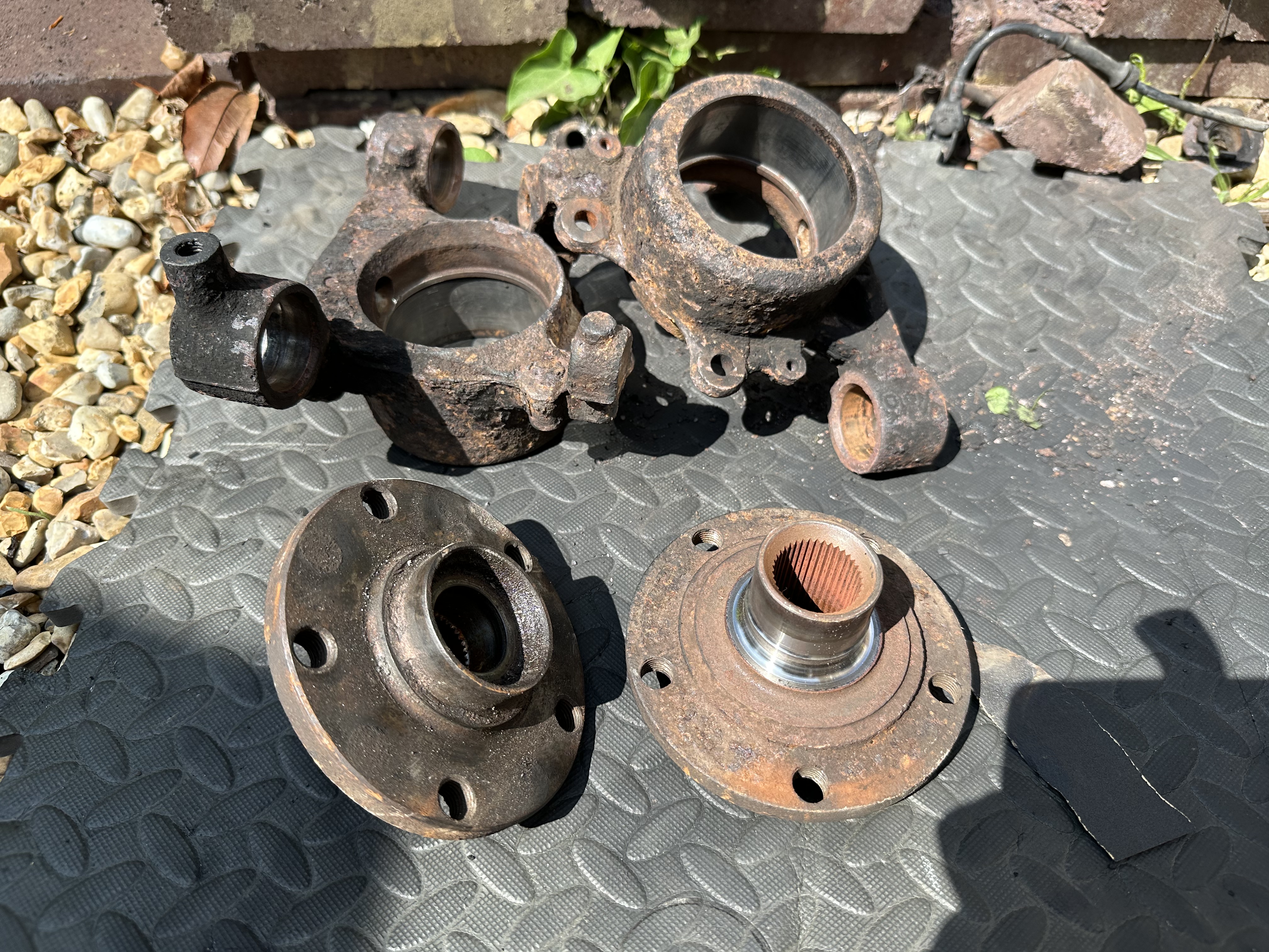 I’ve finally managed to separate the hubs, bearings, bushes and speed sensor from the carriers. Now all that’s left is to lis everything and get it all off to the powder coaters and platers.