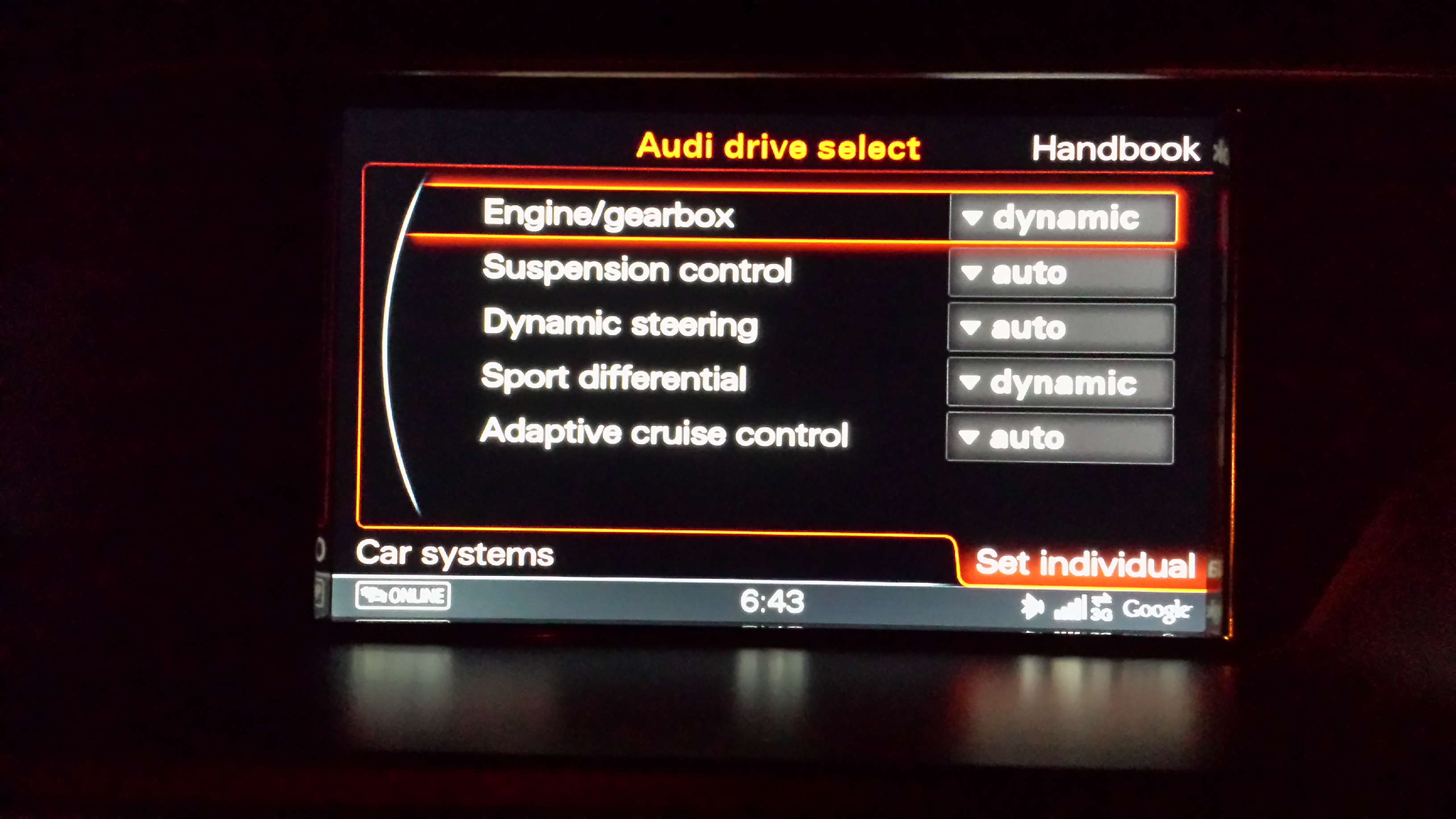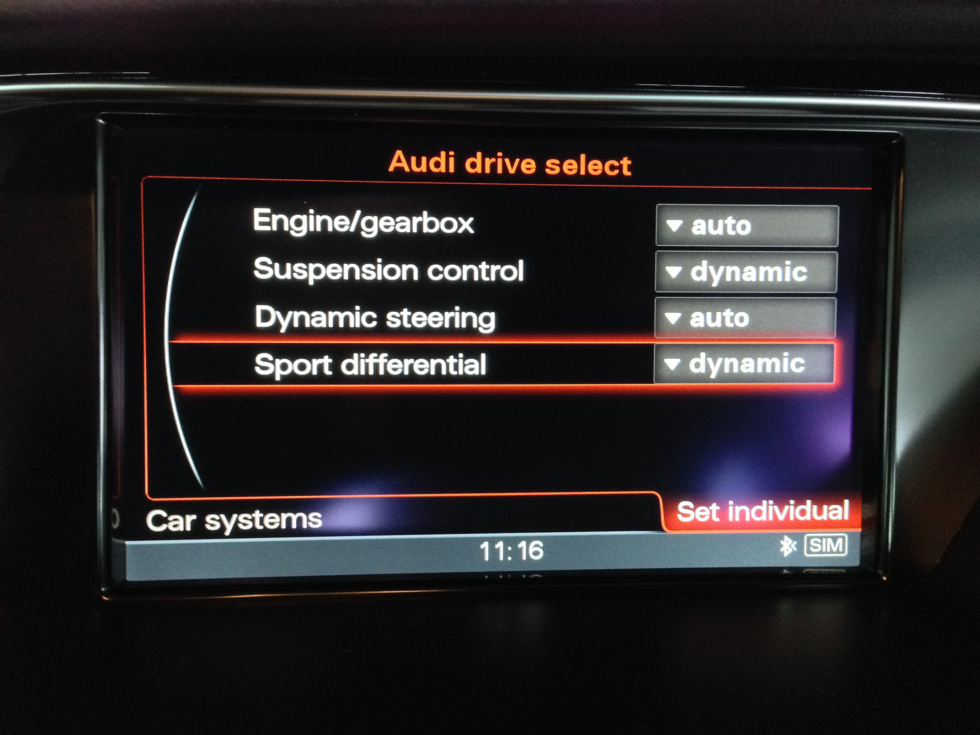 I got the car for a week and thought the Audi Drive select system is quite intuitive. Before I got the car I couldn't find much about it so I thought I should write a short blurb for would be owners. It would also help with the options ordering process. I will get to that in a minute.
