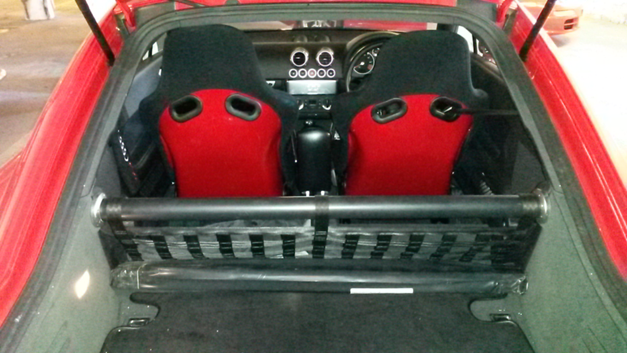 Passenger side has a newly purchased OMP bracket which allows a permanent fixture or the fitting of a £25 recaro runner. This fitting has the benefit of sitting slightly lower in the car and is interchangable with the driver side if required.