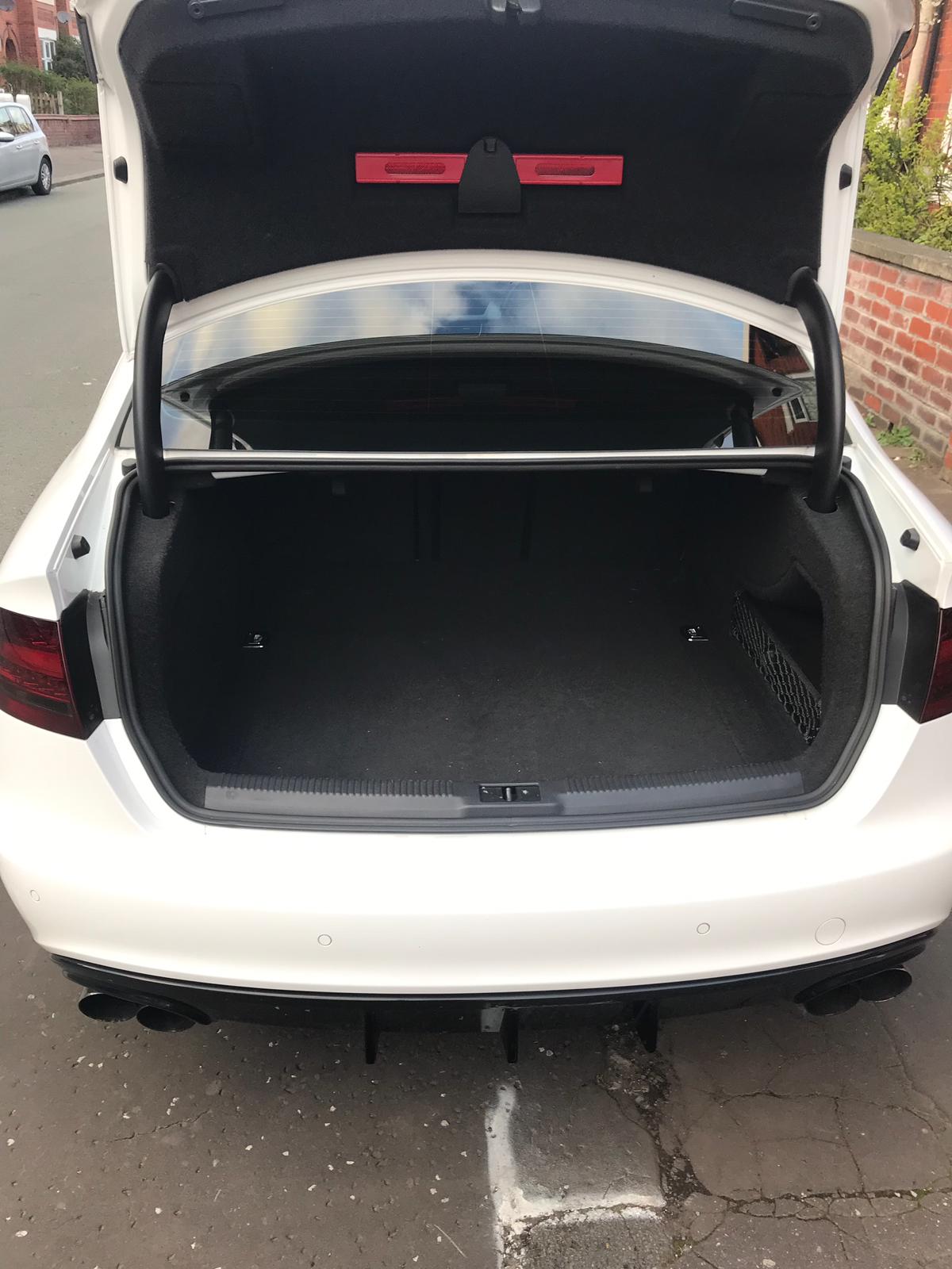 Audi 2010 S4 Arctic White, 53,000 miles, Full Service History at Audi Main Dealer and Specialist History. Interior is Red and Black Leather in Great Condition with Folding Rear Seats. Exterior is Paint Corrected and Detailed including Ceramic Coating the 19" RS4 Alloys which has been recently powder coated in black with near to new Pirelli PZ Zero Tyres, an RS6 style honeycomb black Grill and a rear diffuser in gloss black. The rear tail light has been tinted and the car has Xeon front headlight with day time running lights as standard. The Car has been Professionally Tuned to Stage 2 by the legendary MRC in 2015 which included adding a Full Scorpion Exhaust system not just a catback which makes the car sound Great whilst producing 520 Bhp. The Brakes have been upgraded to EBC pads and Disks. The Great Private Plate is included in the Sale. The Car has been lowered using H&R lowering springs which makes the stance look really good and perfect wheel fitment. First Come will buy this Car it is cheapest considering the colour and power which is more than a Mercedes C63 or BMW M5. For any-more information message me via the forum or my email omar.m5.007@gmail.com