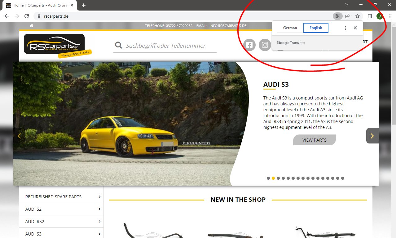 Found the website however how do you change it to English please?steve2003rs6 wrote: ↑Wed Nov 02, 2022 9:27 pmI used RSCarparts in Germany.