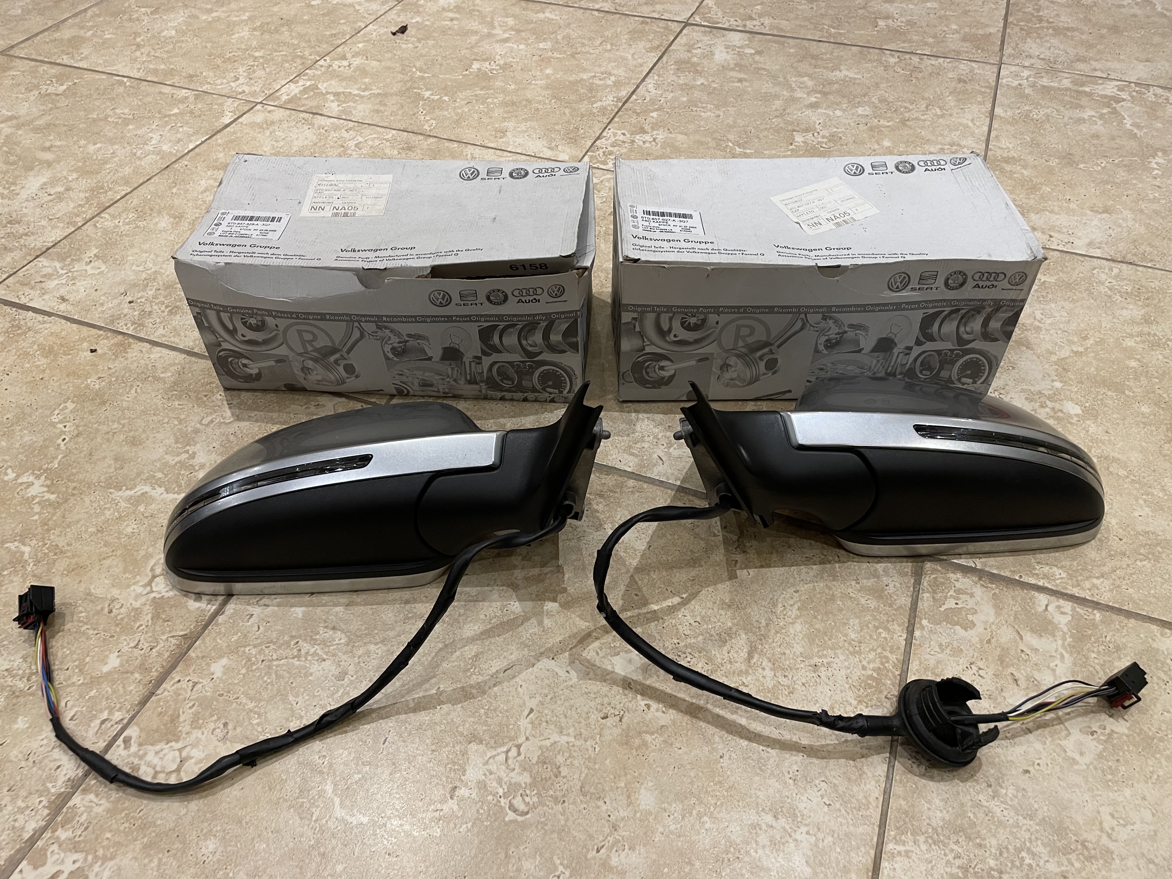The mirrors are in excellent condition and are electrically adjustable and heated. They are the type fitted to the 2009 facelift model which have integrated LED indicators. The mirrors have the silver caps which were fitted to the S3 and RS3 models but will fit to any of the range