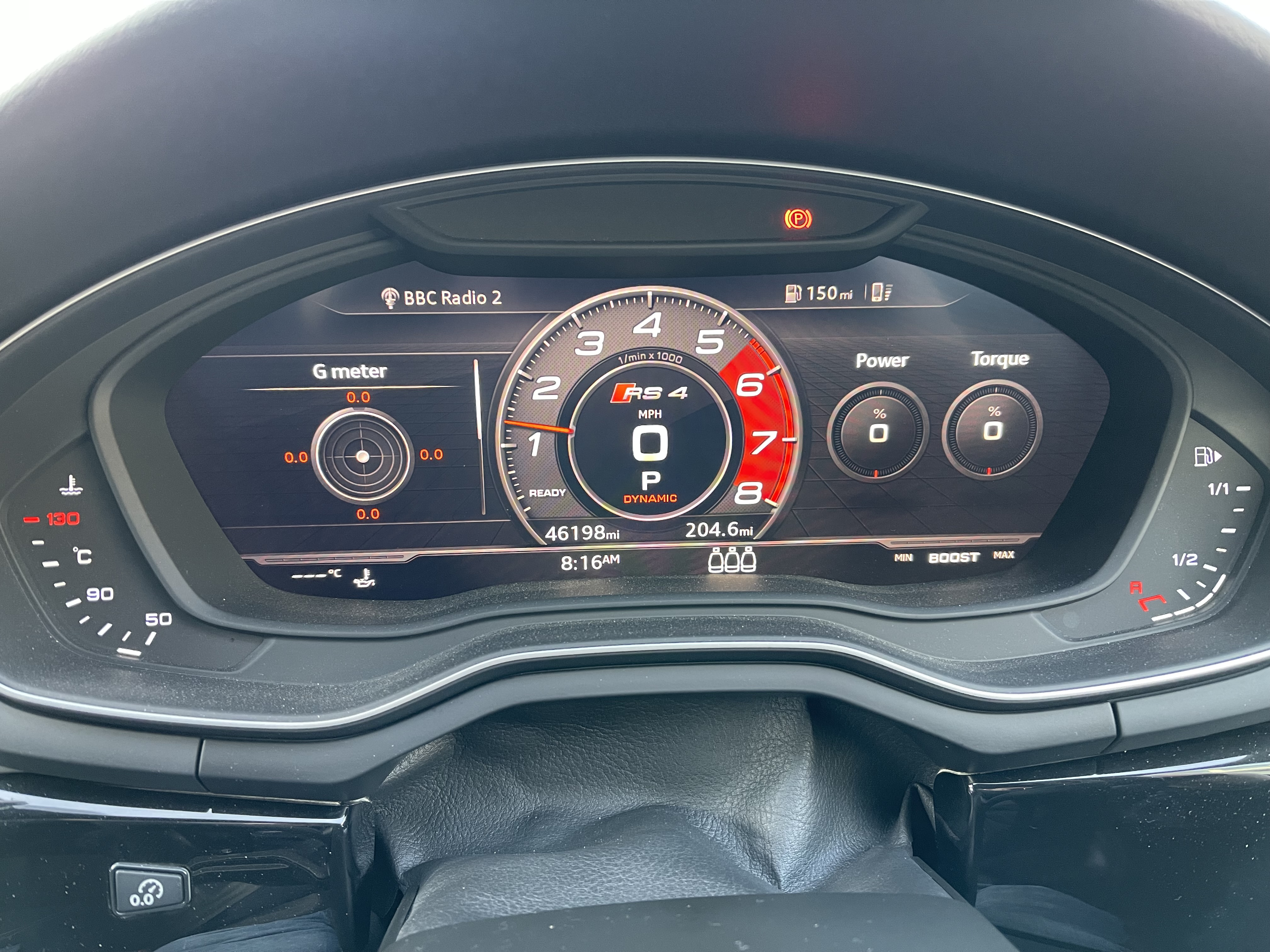 but you only see it when the car is in RS1/RS2 or dynamic mode with the hockey stick tacho on (by changing the default screen setup to 'RS performance' the hockey stick one