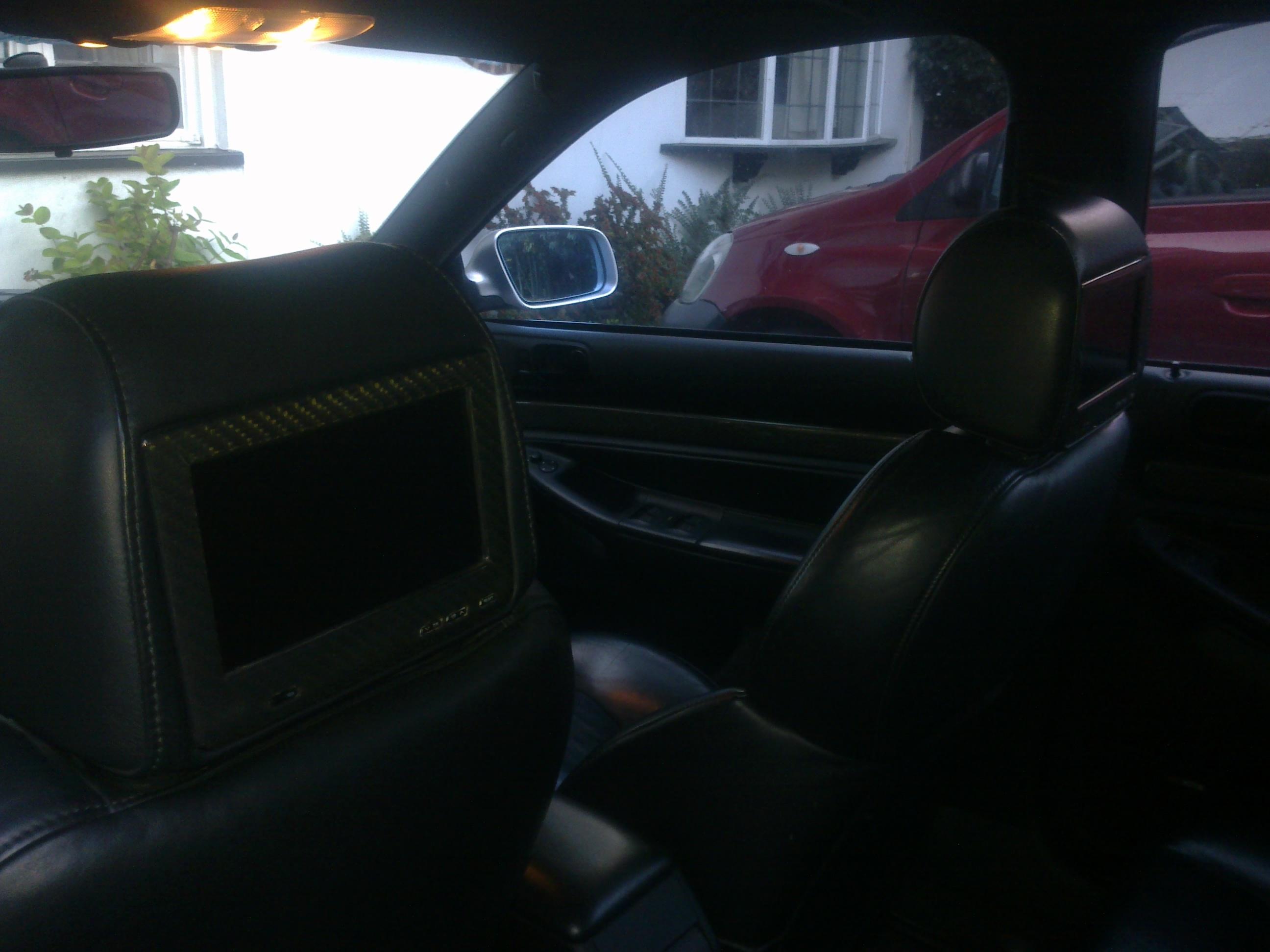 Alpine DVD screens professionally fitted with carbon fibre trim.